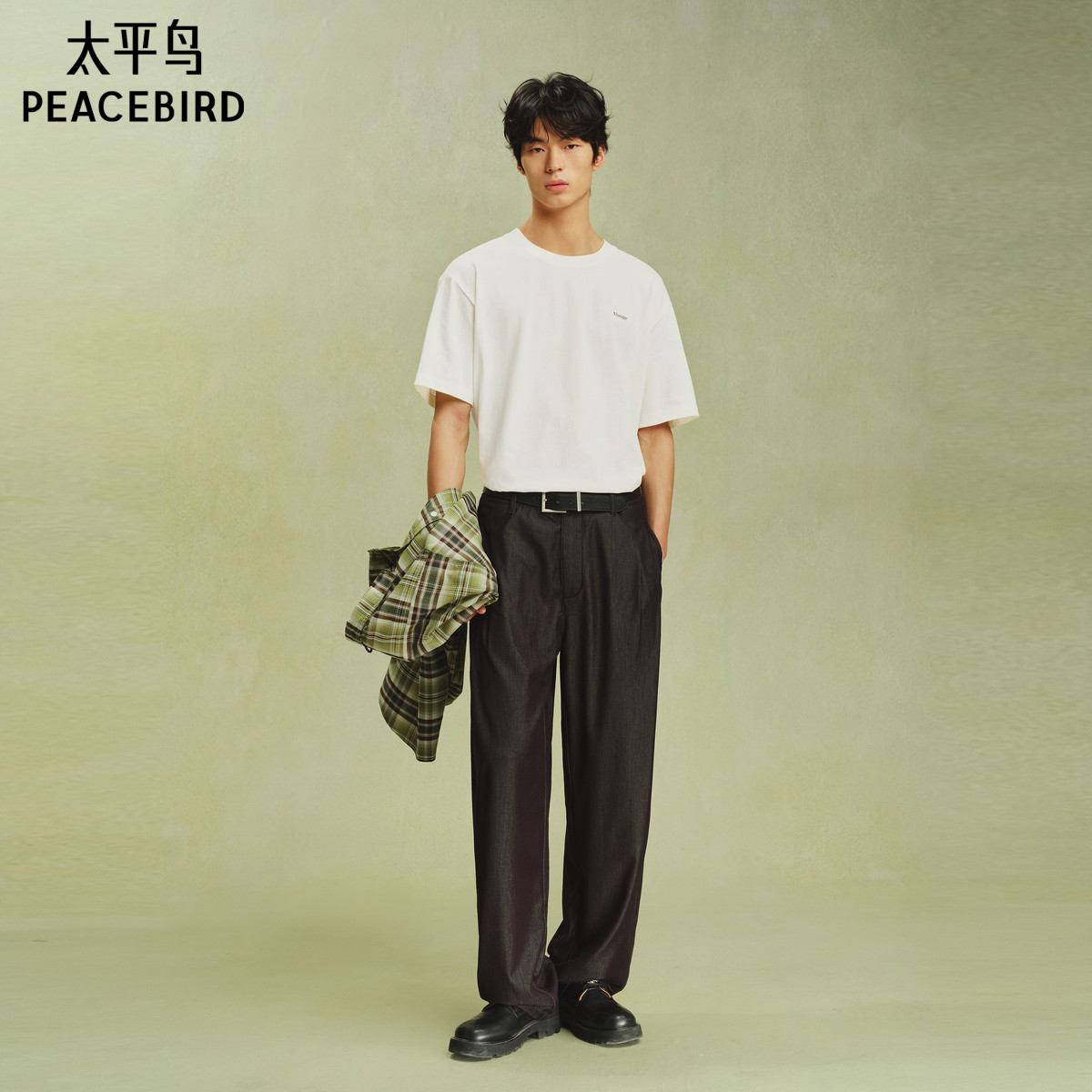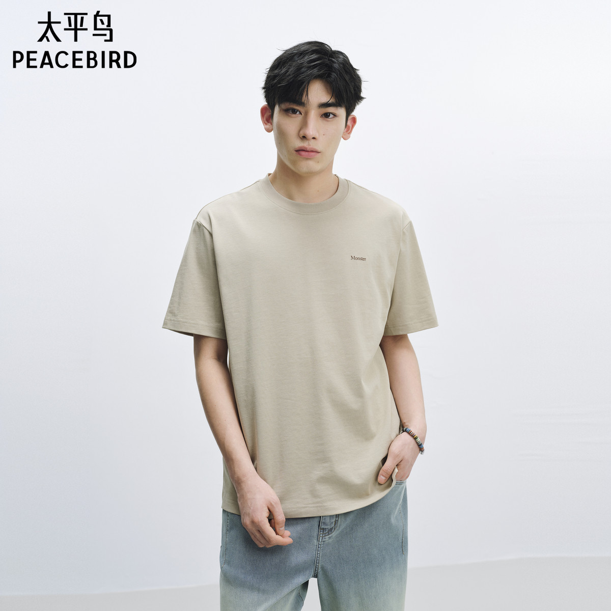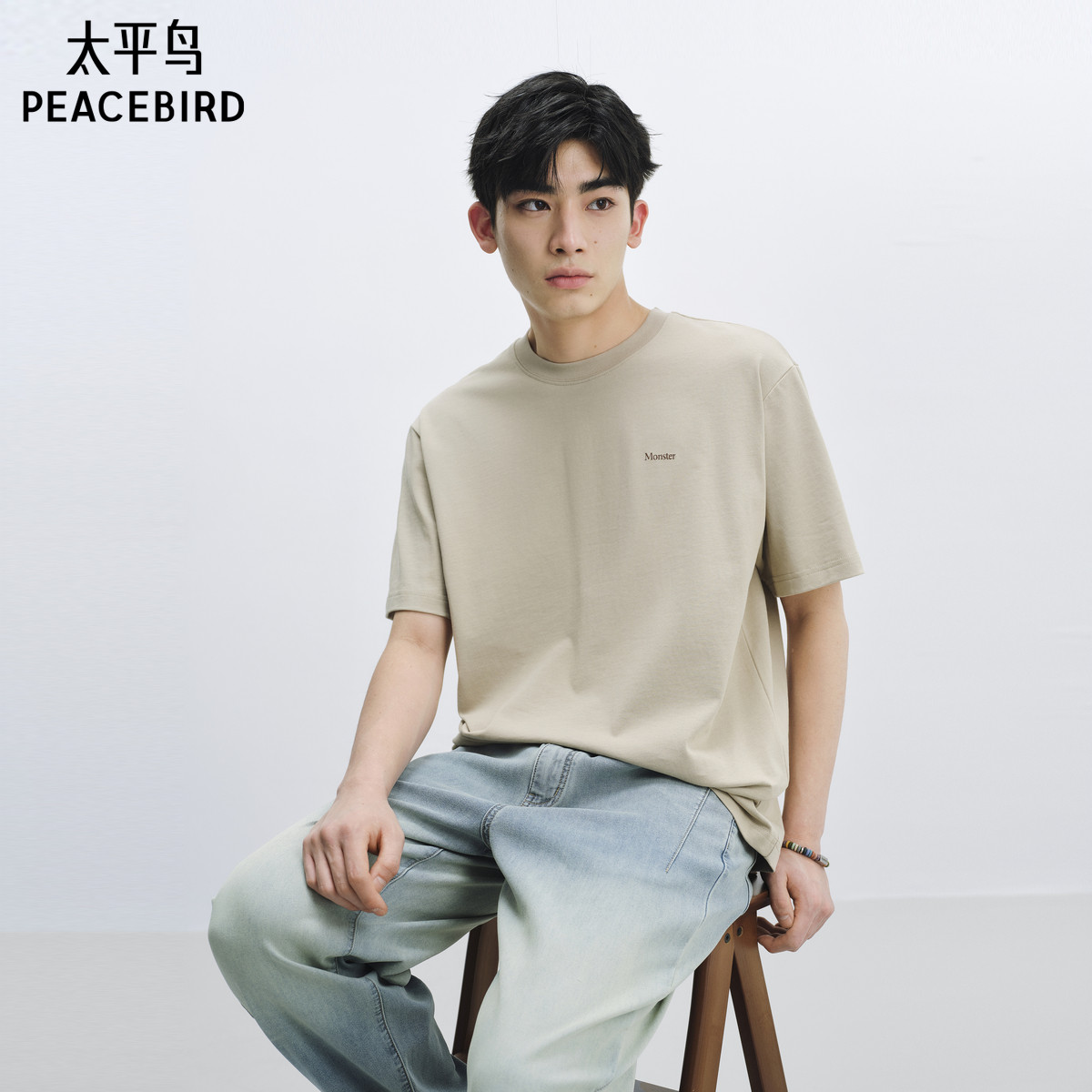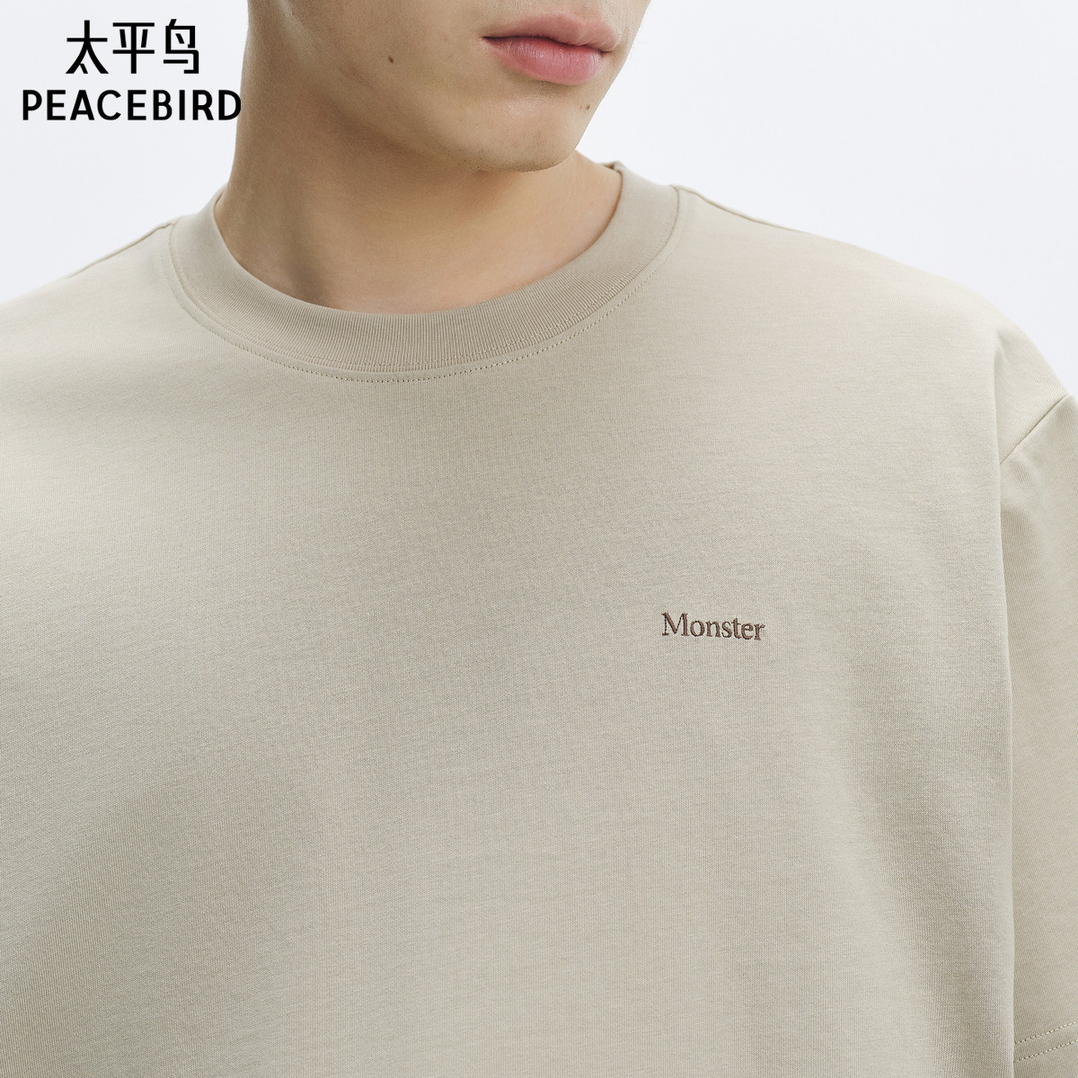 【艺术家系列】太平鸟男装后背刺绣T恤25夏新款圆领体恤衫重磅tS