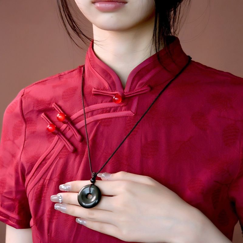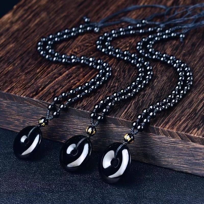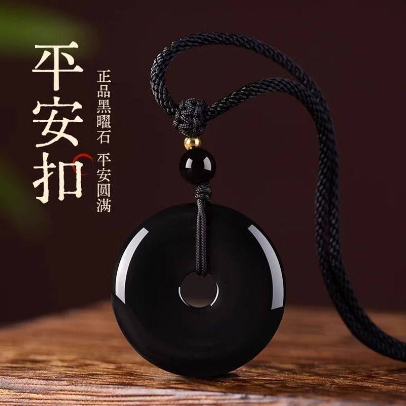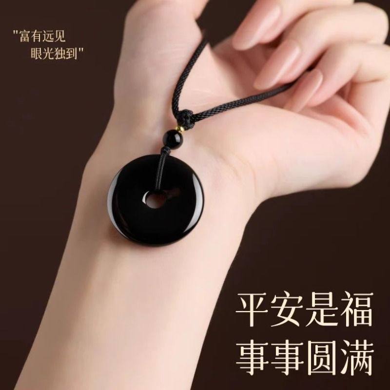 lisv天然黑曜石平安扣吊坠黑耀石黑色饰品项链男女本命年佩戴礼