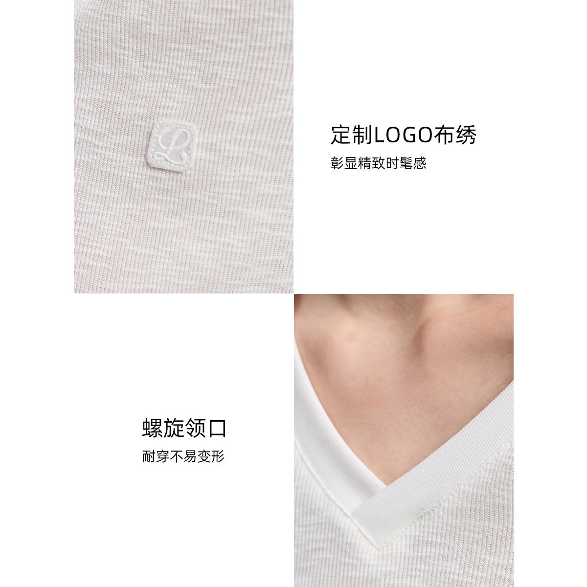 蕉下亨利衫女长袖T恤v领秋冬修身保暖低领打底衫半开领白色上衣