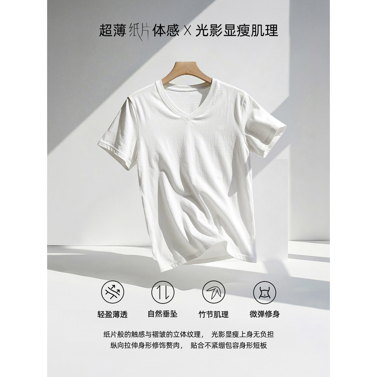 LILY2026夏新款简约肌理感休闲V领气质通勤白色短袖T恤女短款上衣