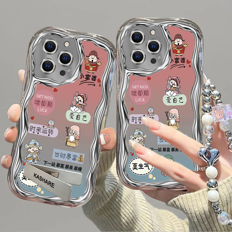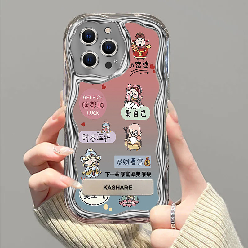 【发财暴富】苹果16pro防摔手机电镀软壳11/12/13/16/17支架保护套15pro/14pro高级16plus人气2026款17promax
