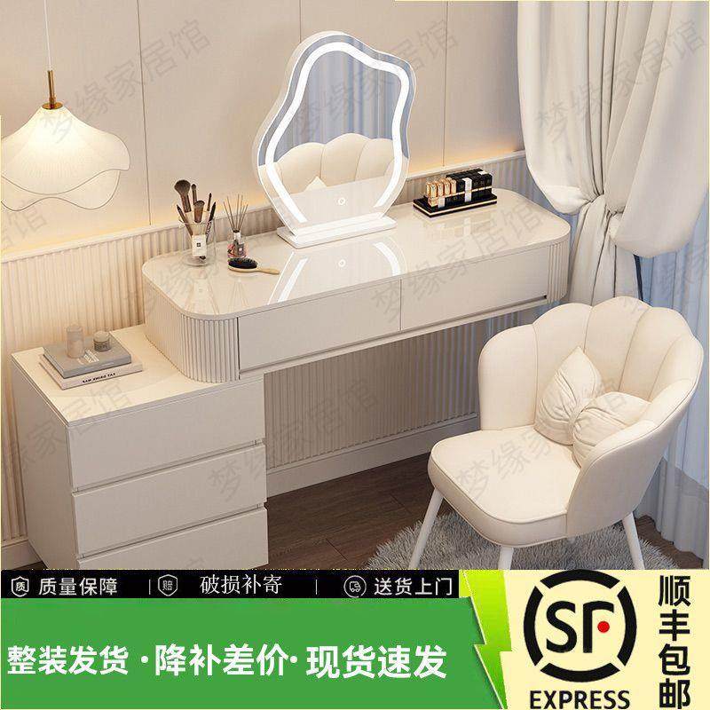 奶风一梳油21851纳妆台现代简约收柜床头柜化妆台体书桌伸缩化妆桌