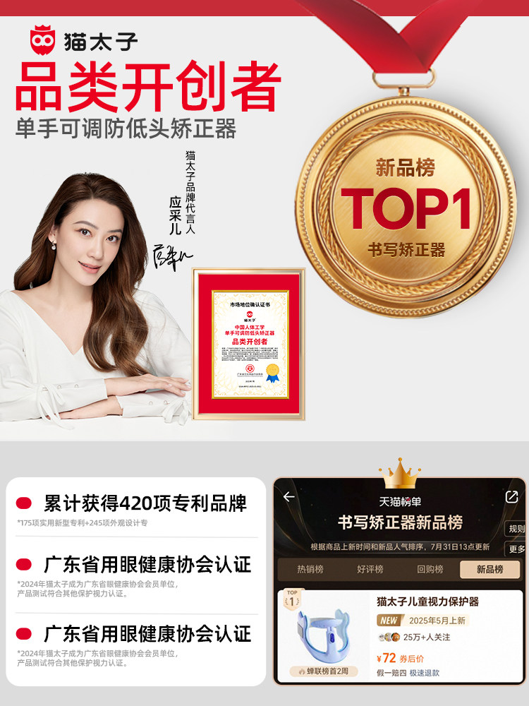 猫太子坐姿怀抱矫正器小学生预防近视支架书桌面款儿童学习纠正写字姿势写作业座椅正姿书写防低头防驼背神器