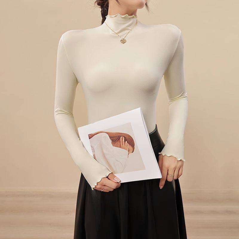 widelia十三行老板娘冬正肩小立领半高领打底衫弹力长袖T恤女9585