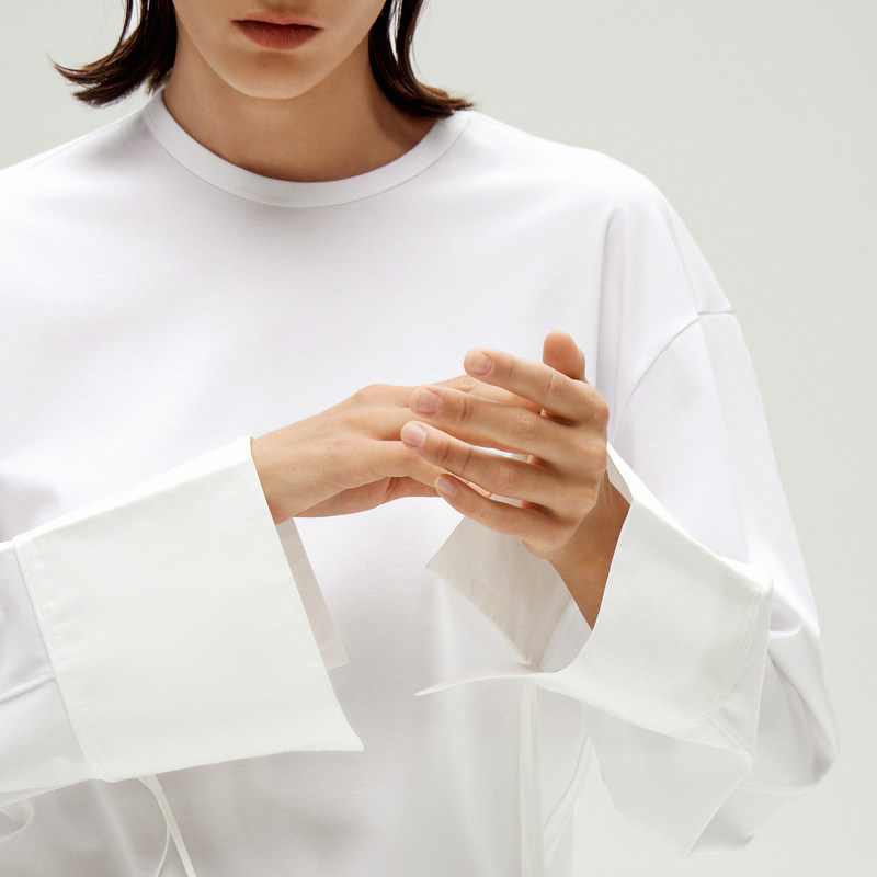 LESS棉质圆领长袖T恤女大袖口设计感窄版时尚简约上衣2O1112060
