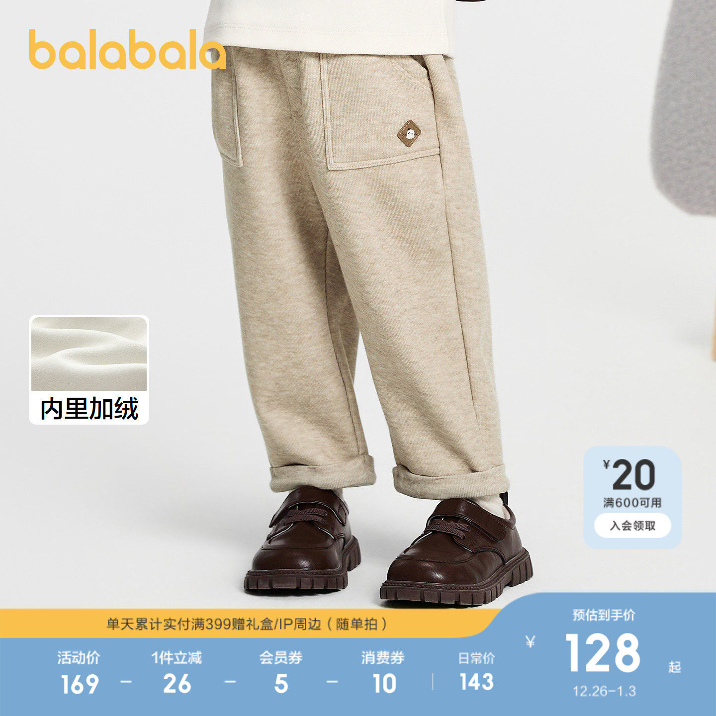 【商场同款】巴拉巴拉宝宝长裤加绒男童小直筒裤子2025秋冬休闲裤
