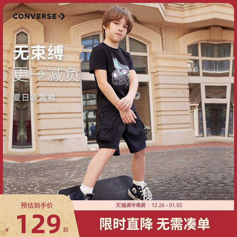 匡威儿童装男童短裤2025夏季新款女童中大童装运动宽松透气五分裤