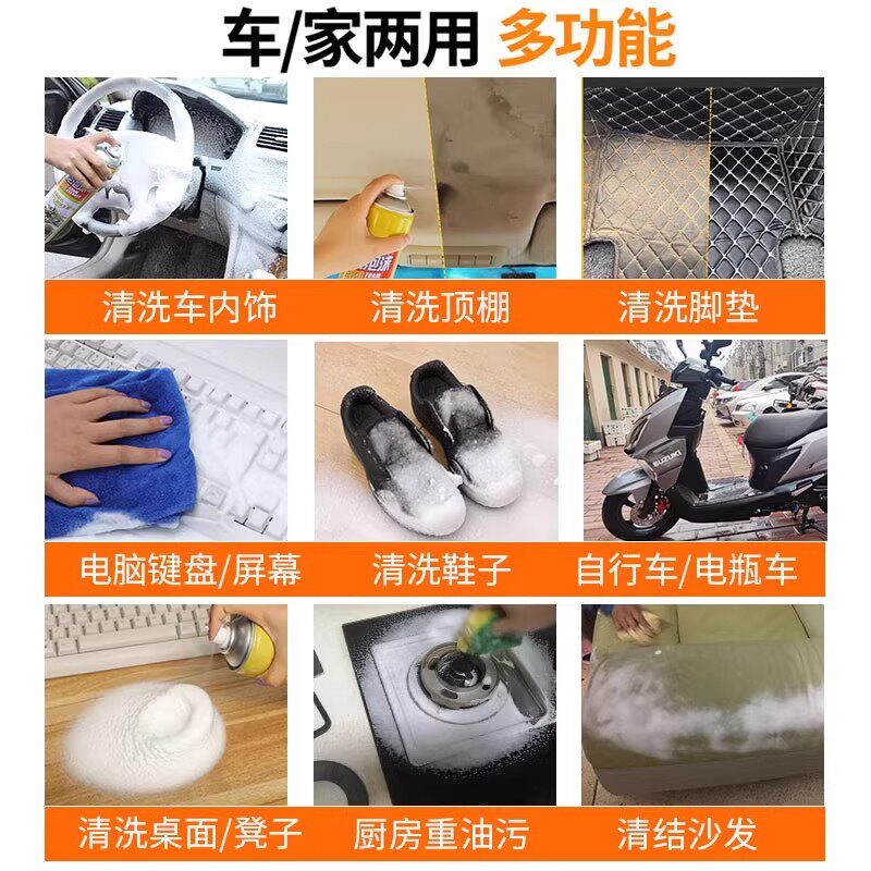 多功能汽车内饰清洗剂免水洗泡沫车内顶棚强力去油污清洁神器通用