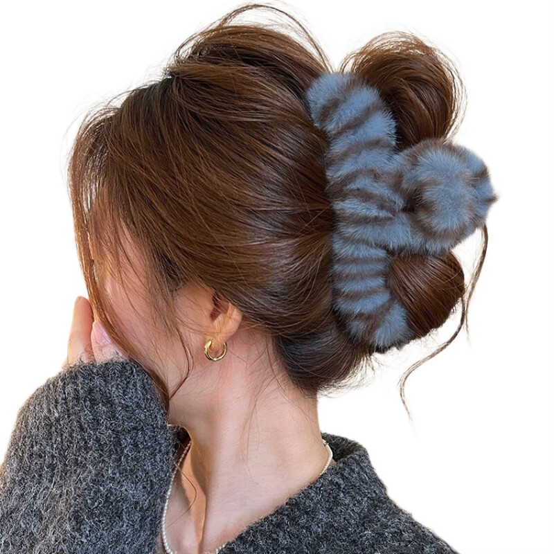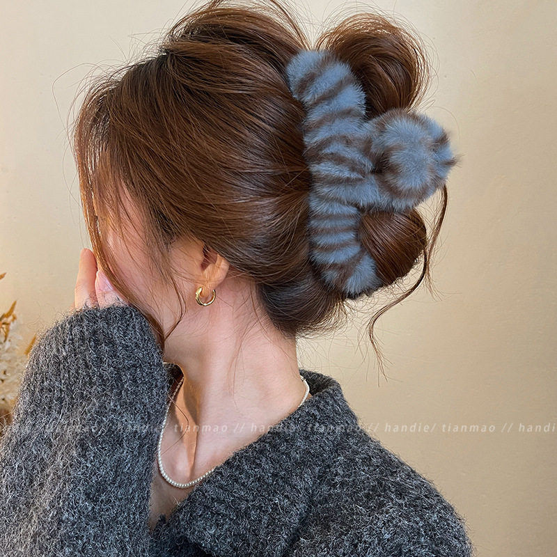 秋冬高级感毛绒豹纹抓夹女轻奢后脑勺法式鲨鱼夹盘发发夹子头饰