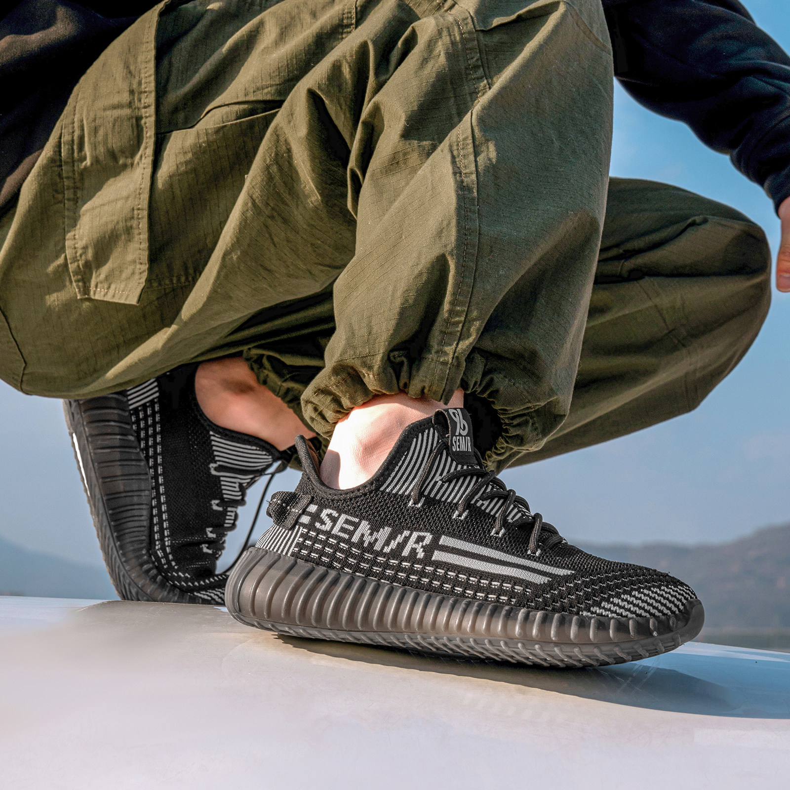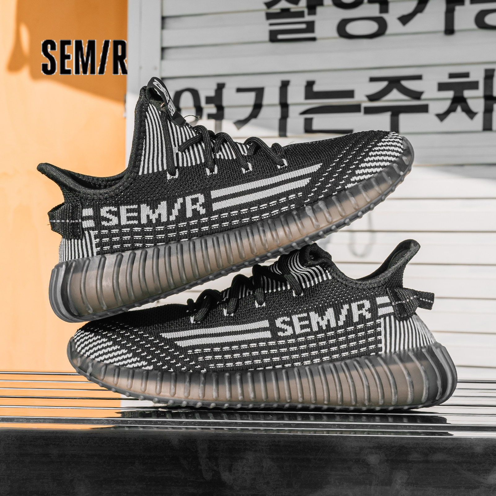 Semir男鞋椰子鞋2026春季新款黑色潮流网面休闲鞋厚底轻便运动鞋