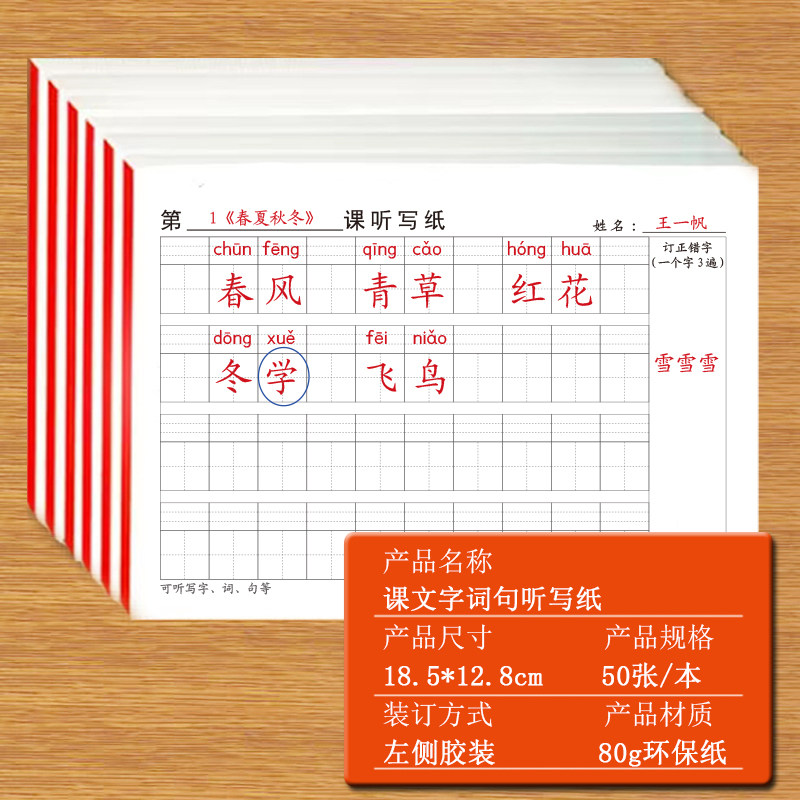 课文字词句听写纸小学生语文人教版课本教材同步词语生字组词订正错字田字格注音默写纸课下练习复习作业纸