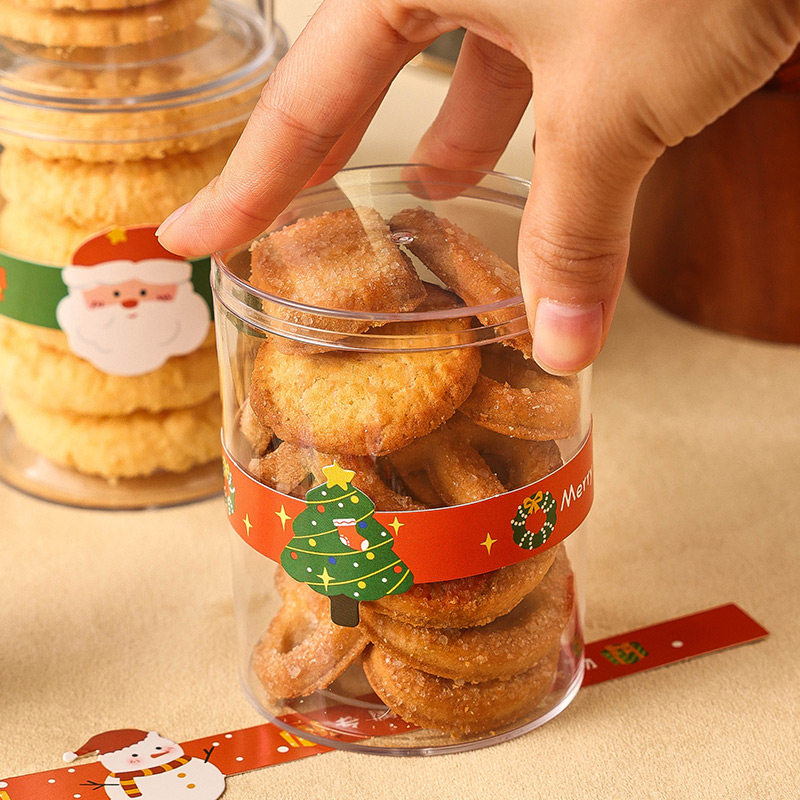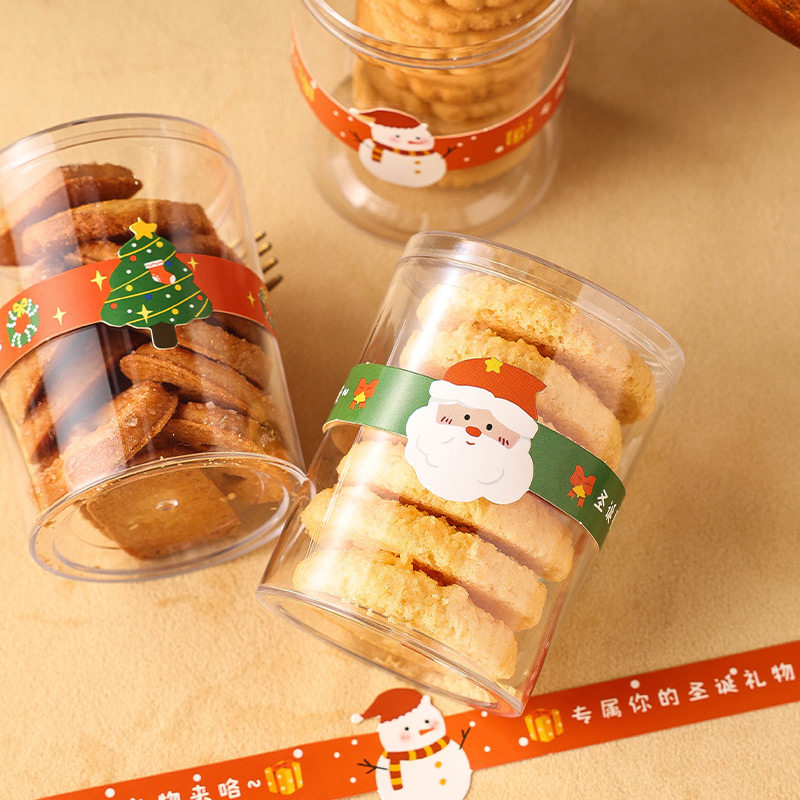 圣诞饼干包装盒透明圆形曲奇糖果蔓越莓圣诞节雪花酥包装盒空盒子