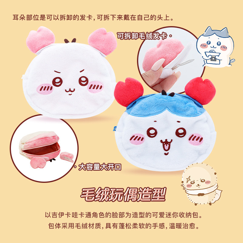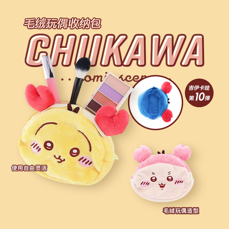 sunstar太阳星CHIIKAWA吉伊卡哇毛绒玩具可爱造型大开口拉链收纳包化妆包零钱包文具数码收纳