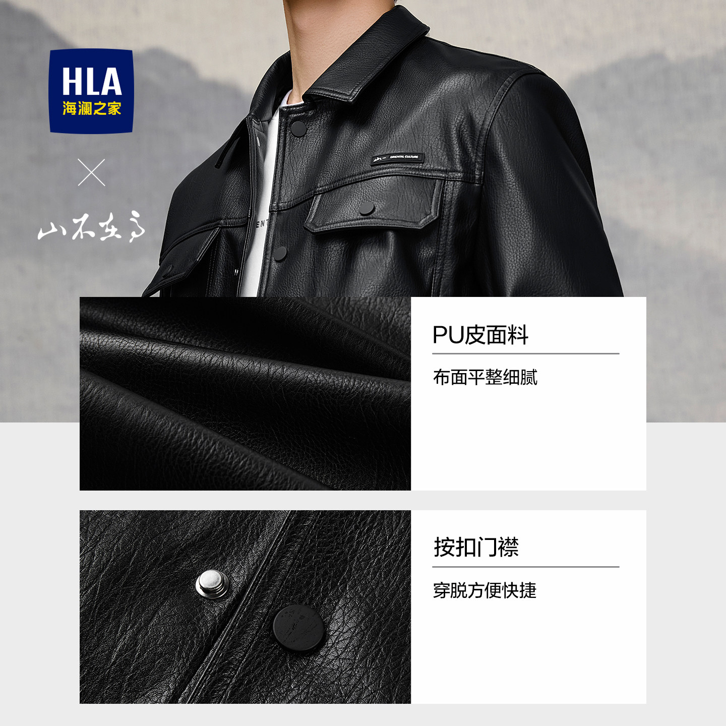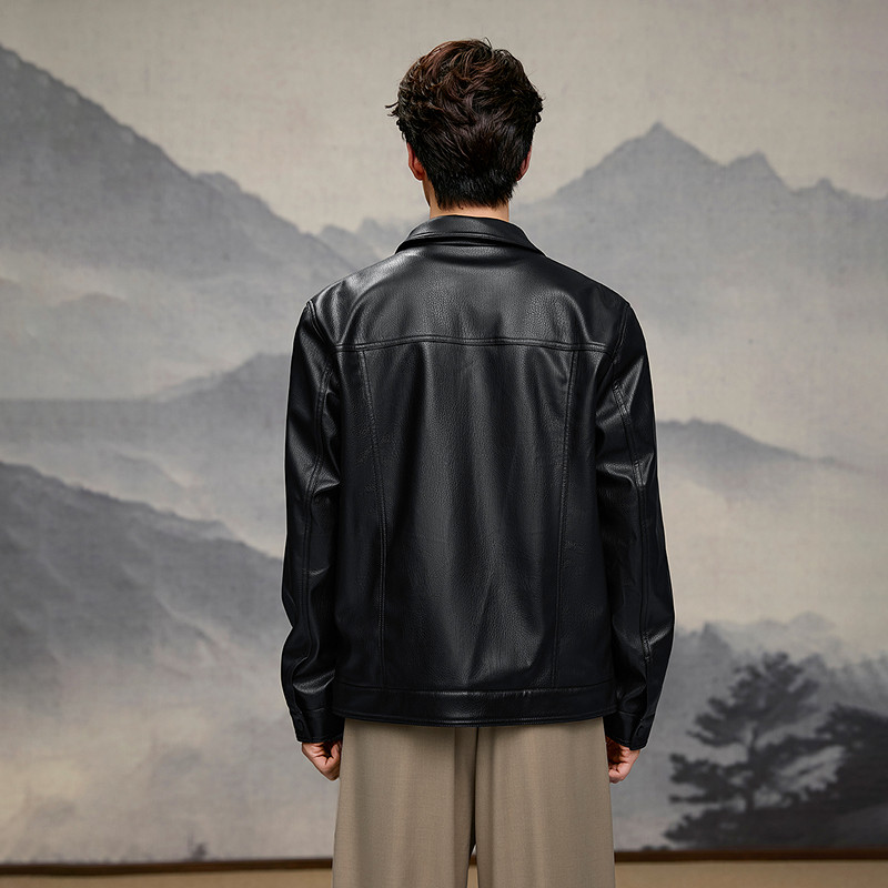 HLA/海澜之家秀场同款山不在高系列夹克26春秋新翻领pu皮衣外套男