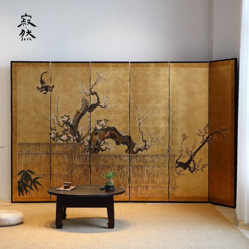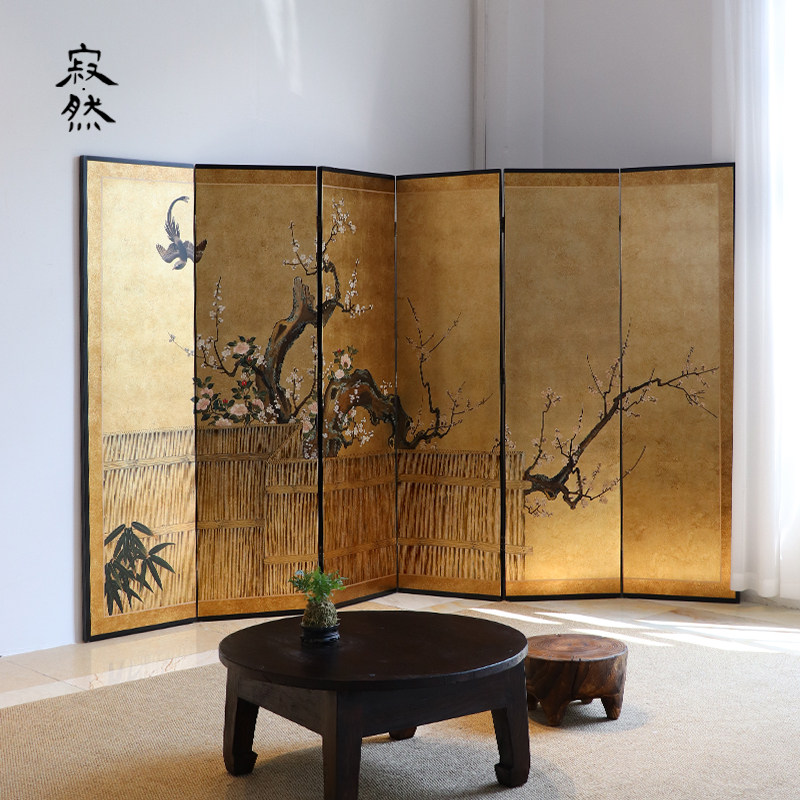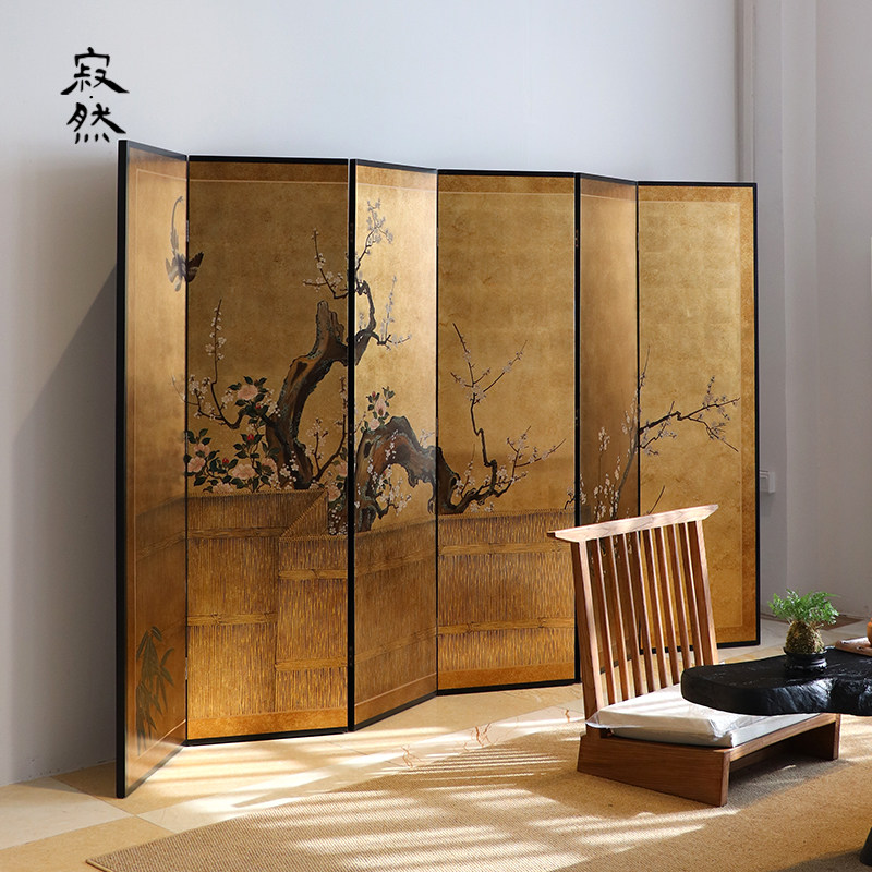 中式屏风隔断客厅2025新款禅意宋代美学金箔屏风手绘日式折屏定制