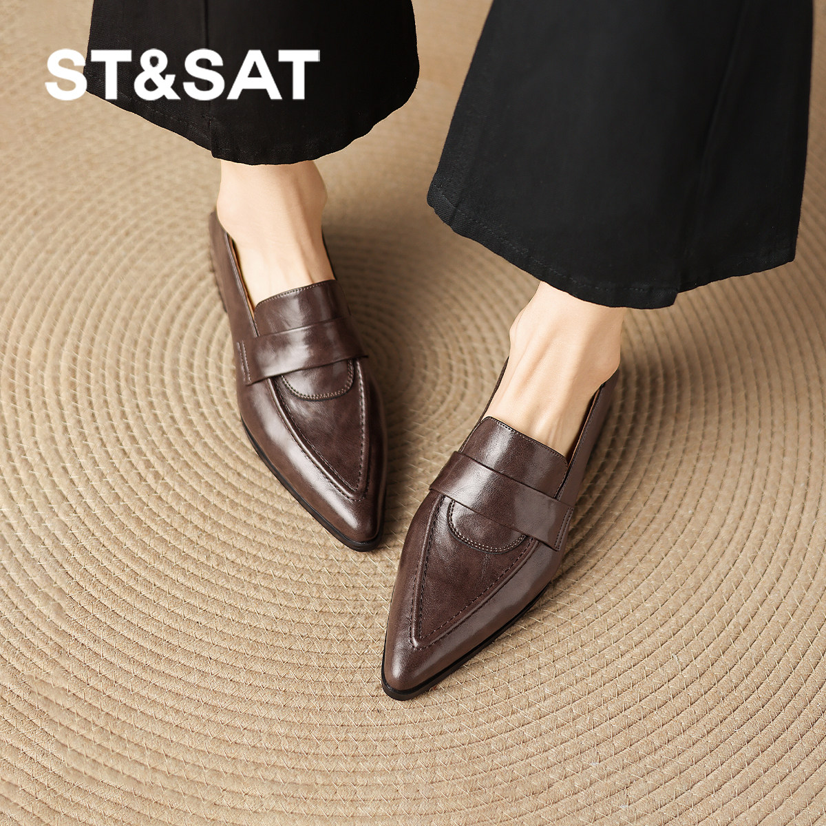 星期六棕色乐福鞋女春季新款英伦风粗跟小皮鞋法式尖头单鞋子