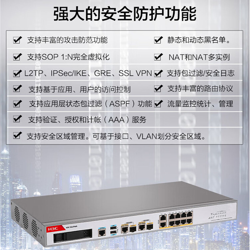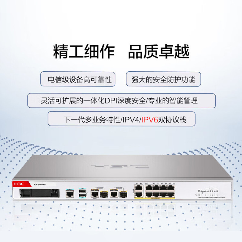 华三(H3C)F100-M-G5 8电口+2光全千兆多业务企业级网络安全管理防火墙
