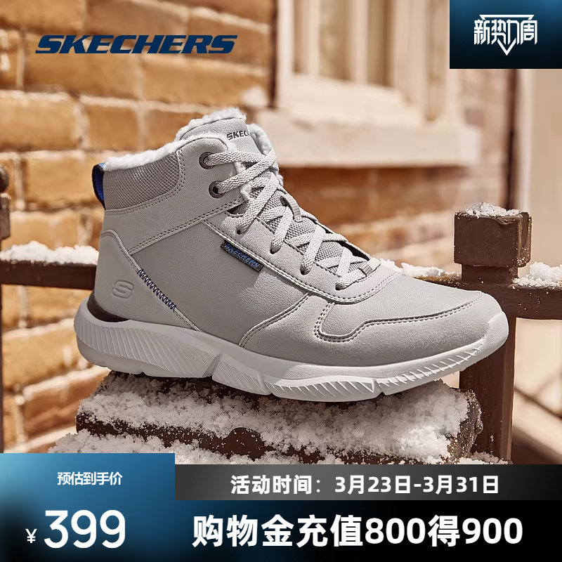 斯凯奇新款男士绑带高帮鞋舒适保暖加绒柔软休闲鞋耐磨运动