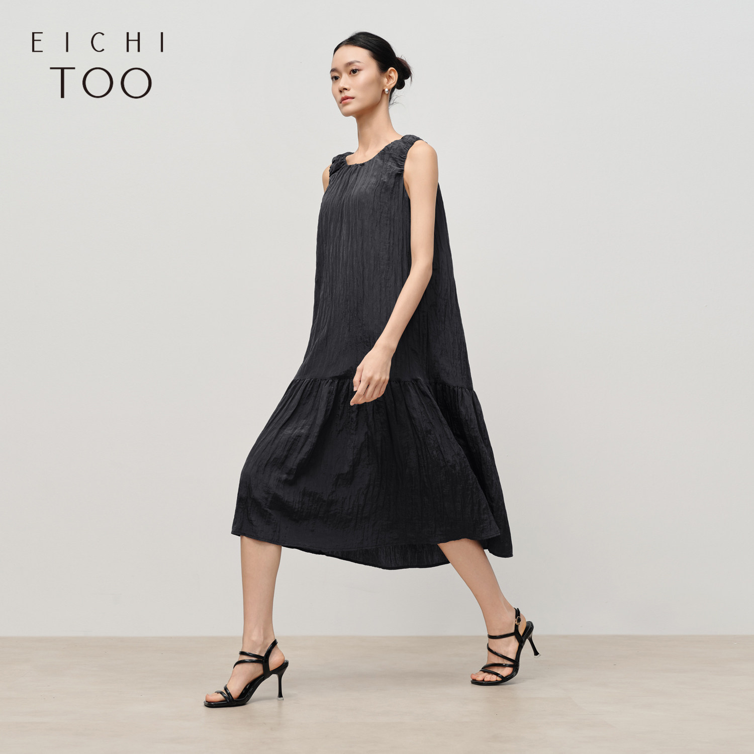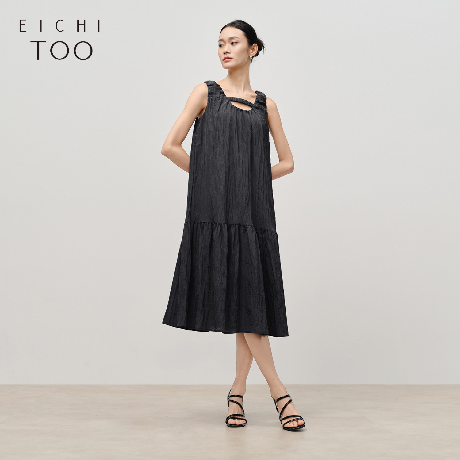 QY2 2026年春夏新款女装黑色无袖简约风格宽松版型连衣裙