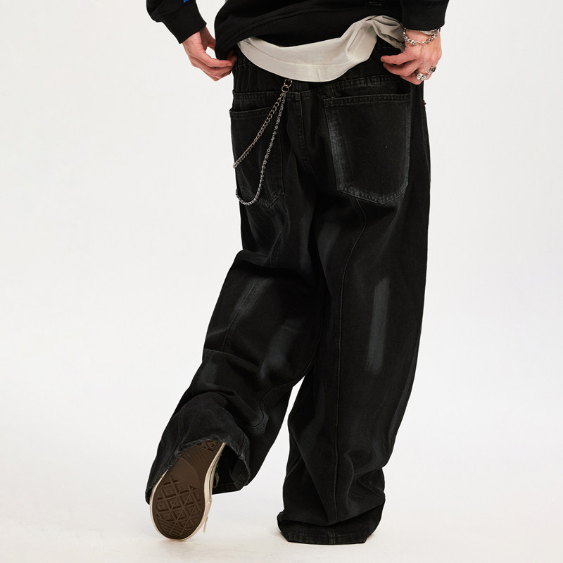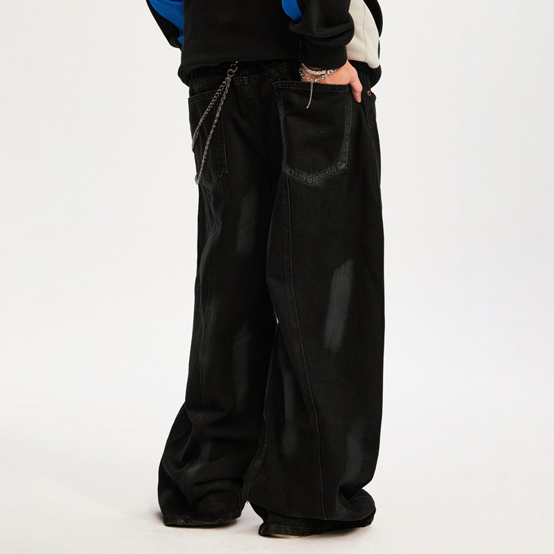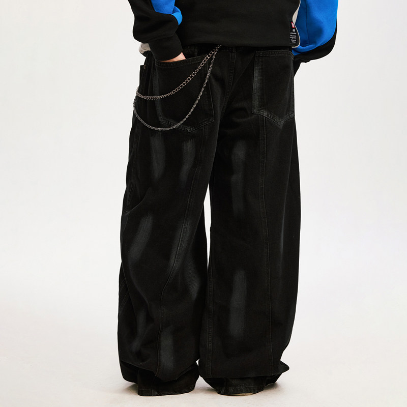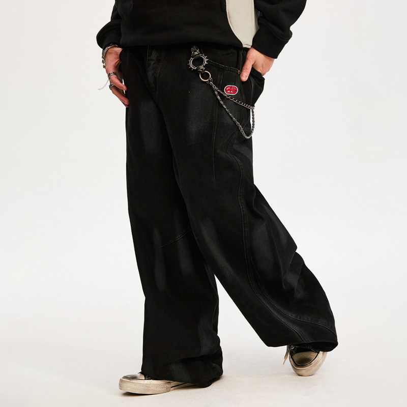 RAPPEYE 国潮设计感复古美式高街宽松显瘦直筒侧袋弯刀阔腿牛仔裤