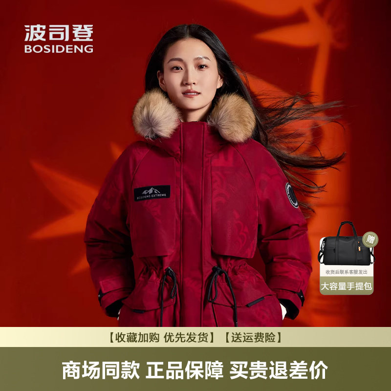 波司登羽绒服女冬爆款户外极寒系列鹅绒中长款新年红貉子毛领加厚