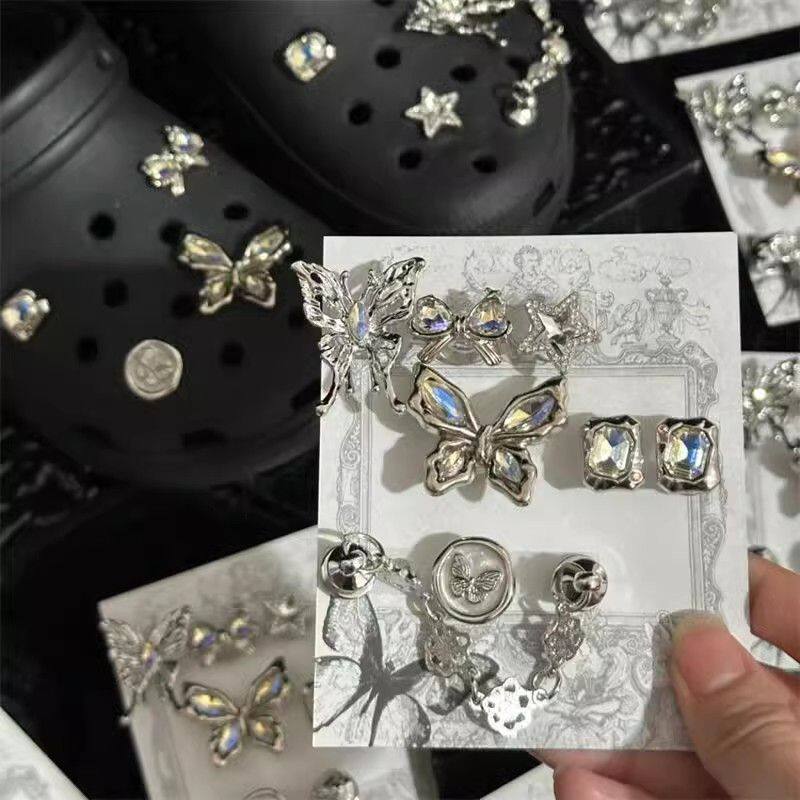 2026原创蝴蝶洞洞鞋扣配饰花鞋ins高级金属装饰鞋花diy配件可拆卸