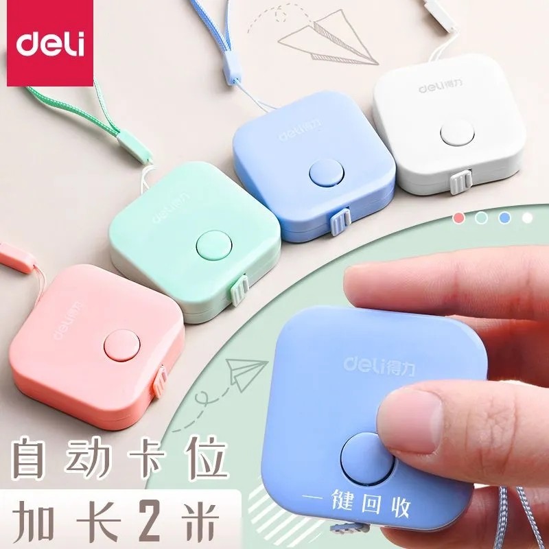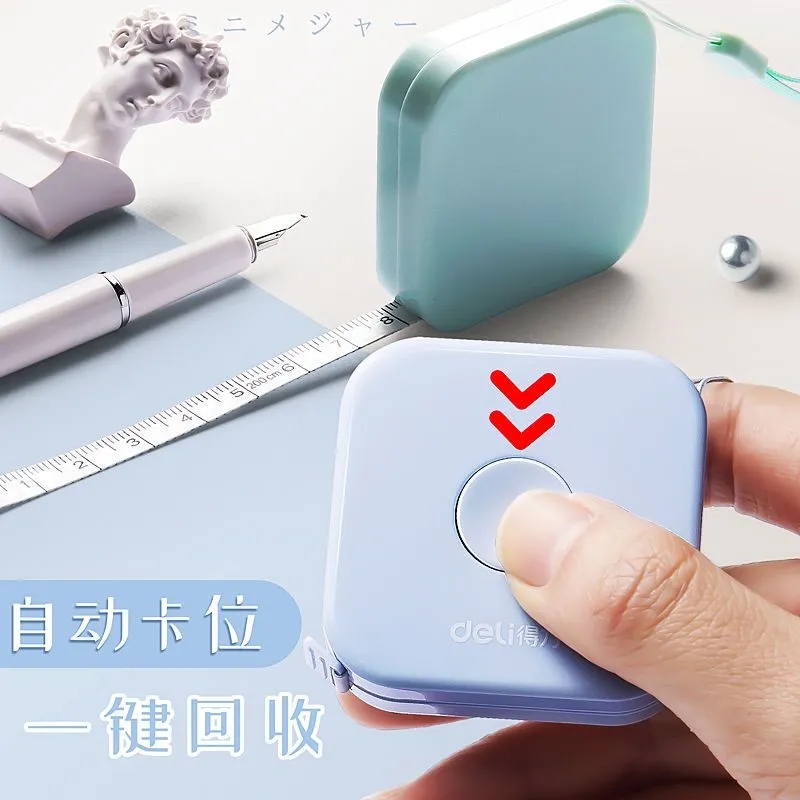 得力卷尺迷你小型2米量三围皮卷尺设计师专用尺子家用自动软尺小学生儿童测量衣服腰围身高健身体围度尺定制