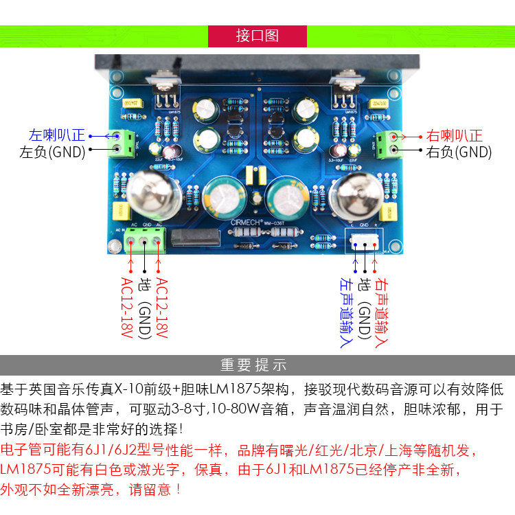 发烧级6J1电子管LM1875功放HIFI音响真空管胆机石放大器6J2成品板