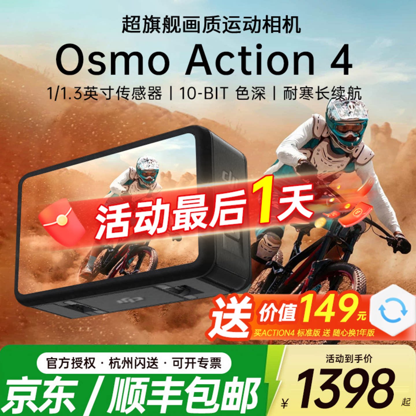 【京东顺丰】DJI 大疆 Action 4运动相机潜水户外山地骑行摩托车