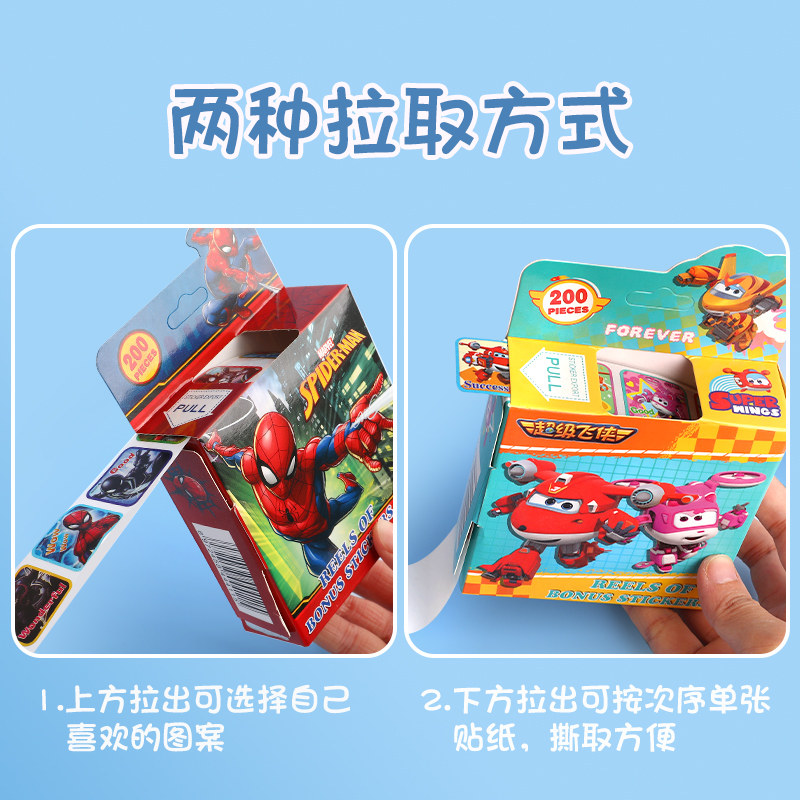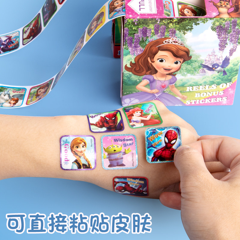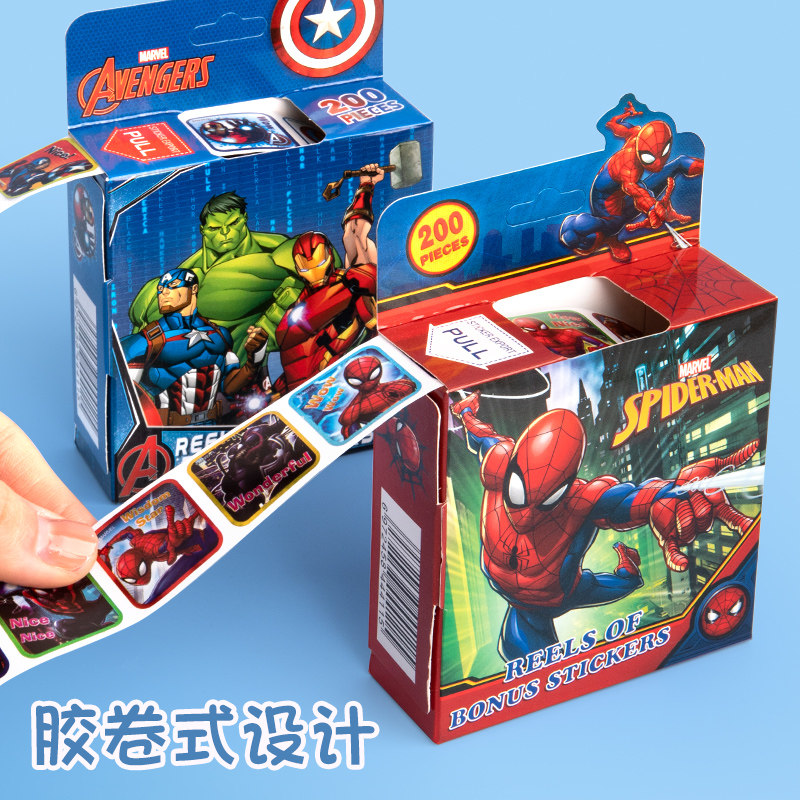 儿童奖励卷卷贴纸卡通赛车总动员超级飞侠漫威蜘蛛侠冰雪奇缘儿童卡通贴画男孩女孩宝宝幼儿园表扬玩具粘贴画
