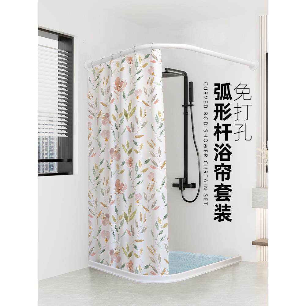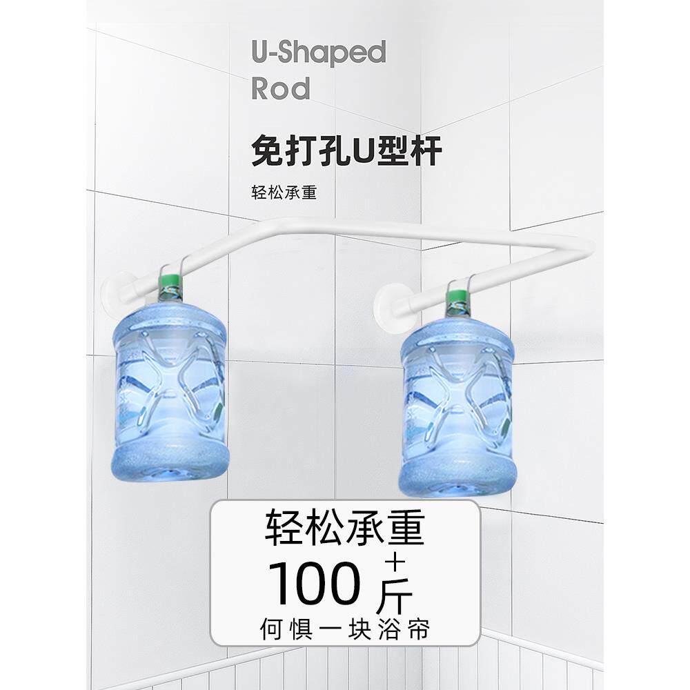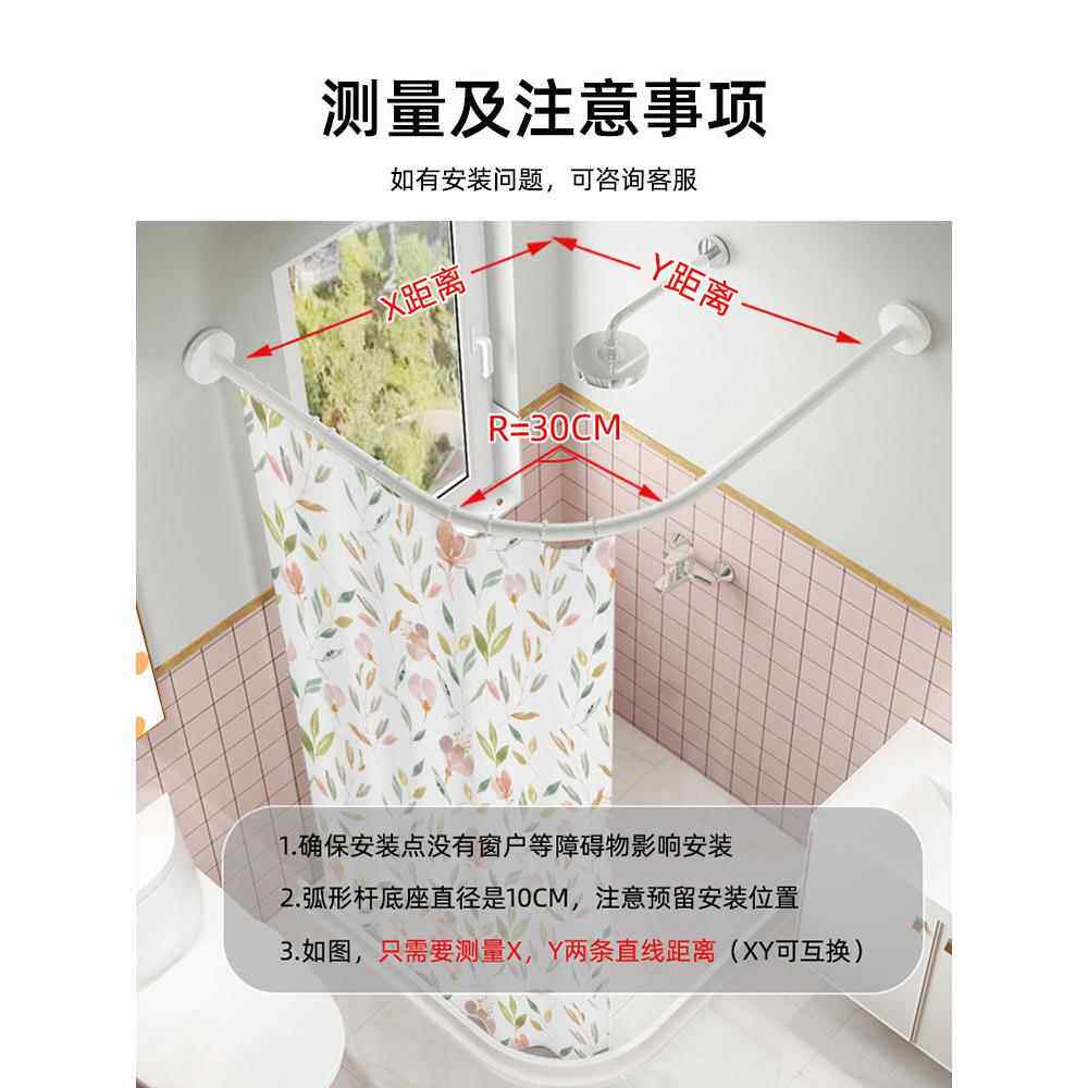 J6DA弧形伸缩浴帘杆免打孔 304不锈钢卫生间淋浴房L形半U型浴室浴