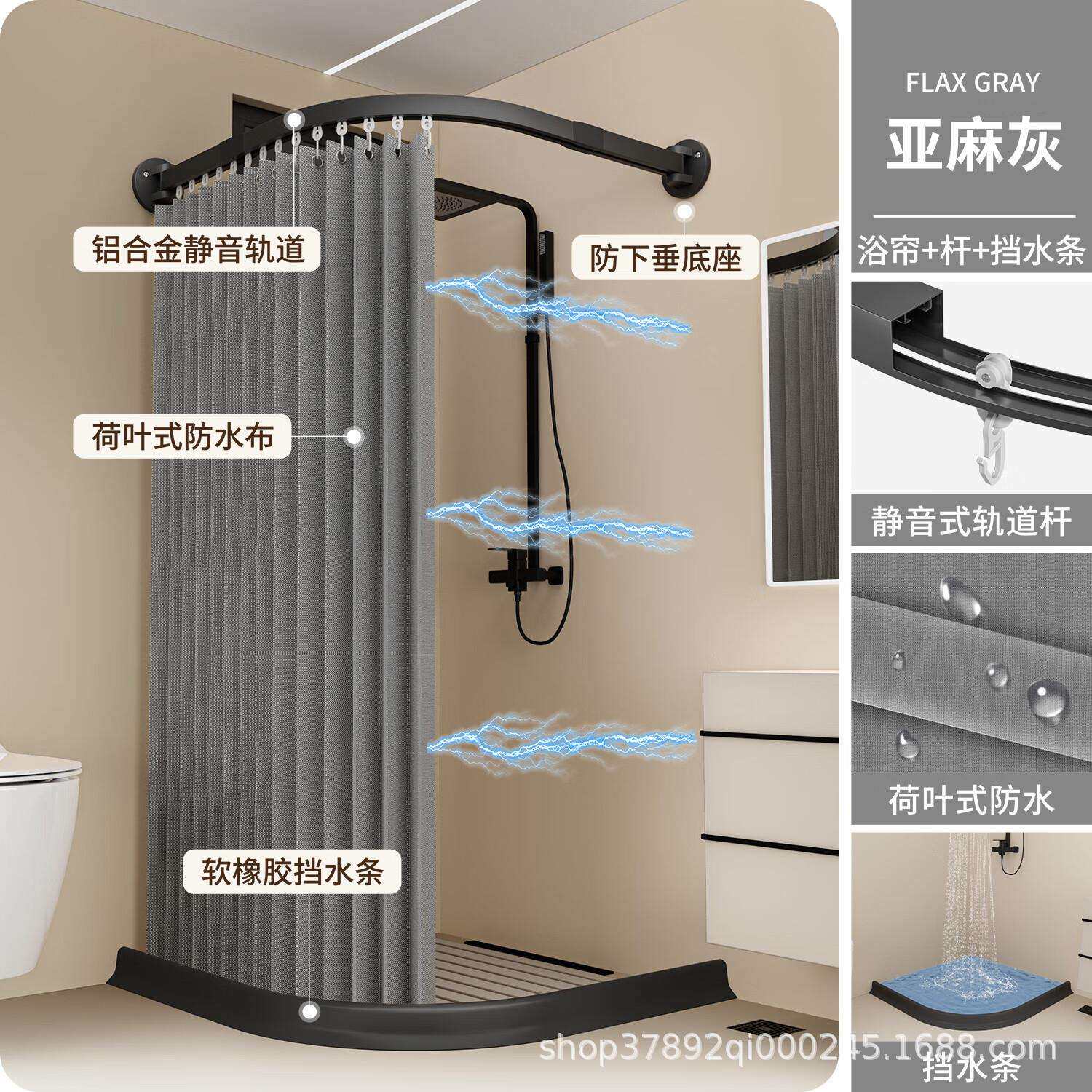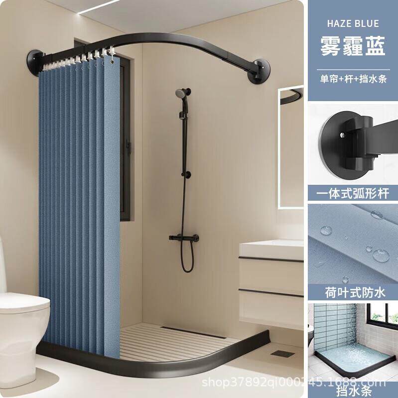 弧形轨道浴室防水防霉帘浴帘杆免打孔淋浴房折叠隔断帘子干湿分离