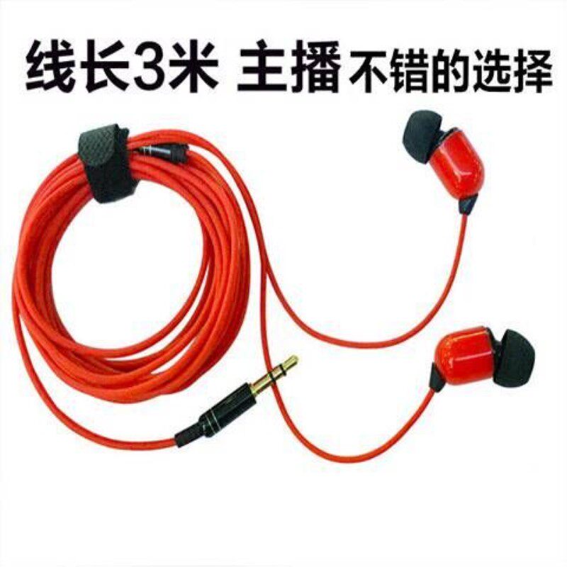 入耳式3米监听耳机耳塞电脑k歌声卡专用yy主播直播重低音三米长线