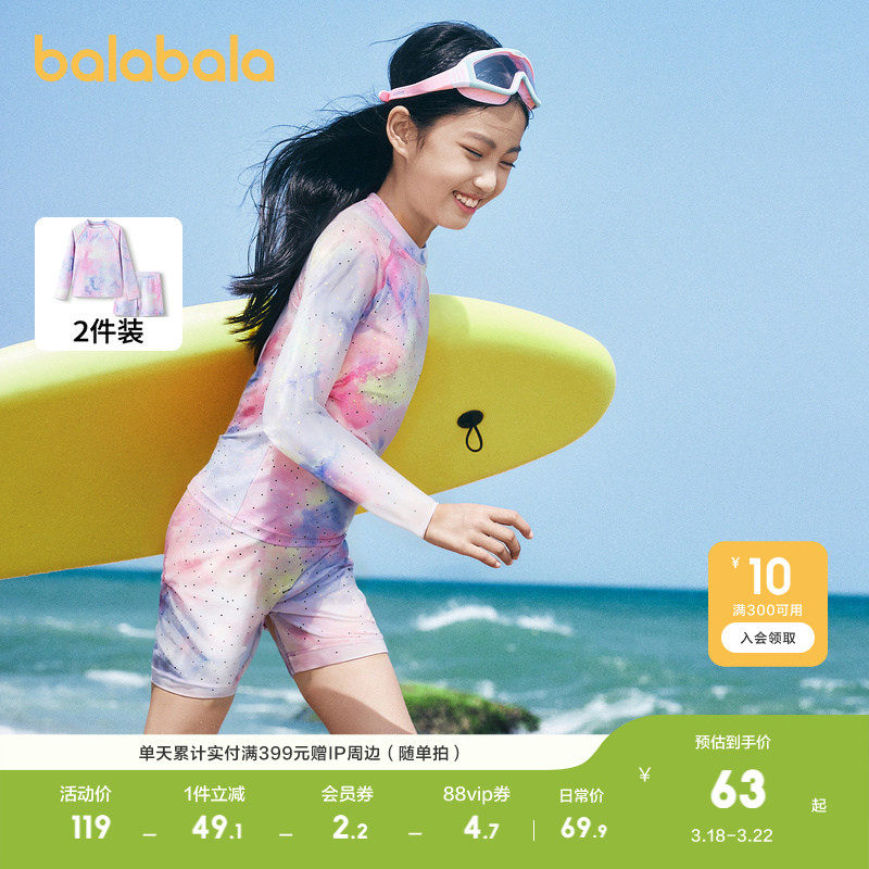 巴拉巴拉儿童泳衣套装女童游泳衣中大童分体泳装青少年防晒晕染潮
