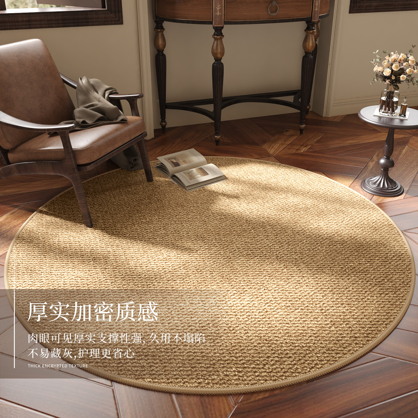 圆形客厅地毯高级感卧室主卧床边毯梳妆台椅子防滑耐磨地垫可定制