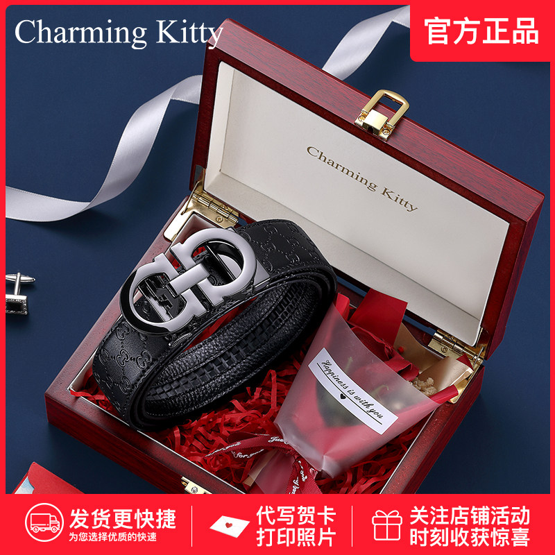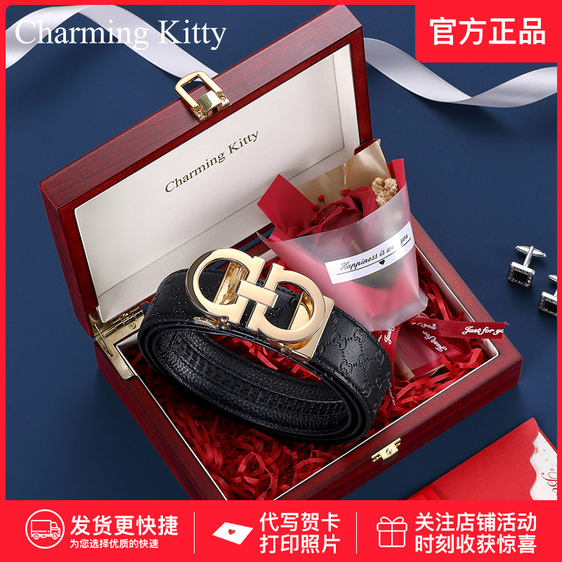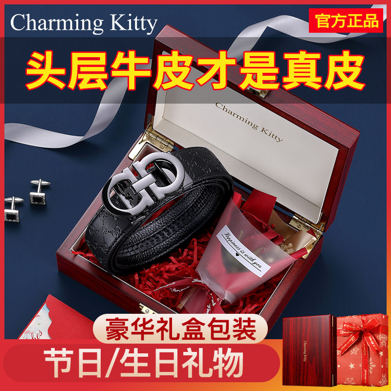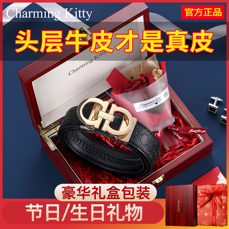 真皮男士腰带年轻人新款自动扣商务休闲百搭时尚黑色皮带礼盒装