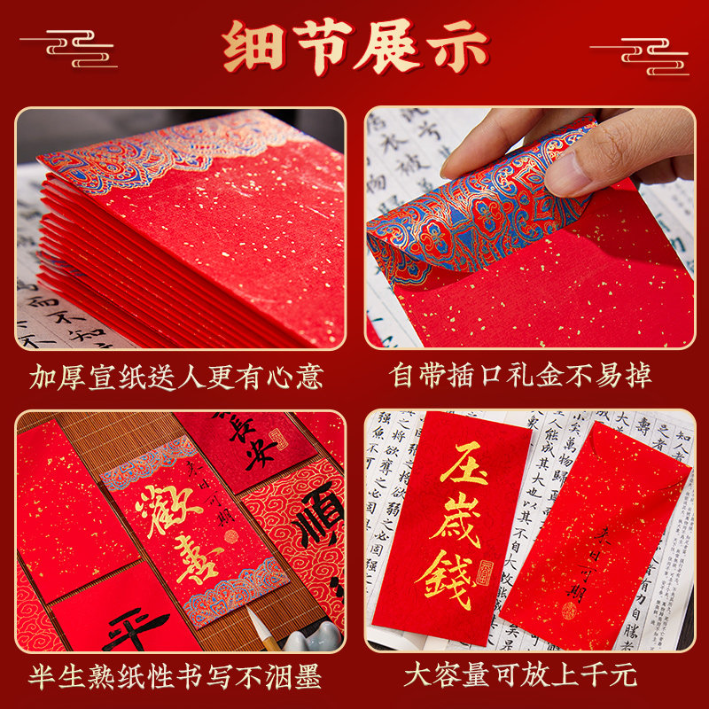 万年红宣纸红包洒金红纸加厚手写空白书法新年红包小孩压岁钱喜庆利是封结婚婚庆乔迁之喜馈赠红包手工diy