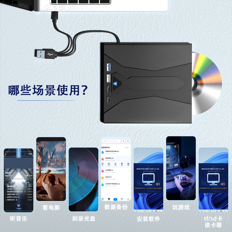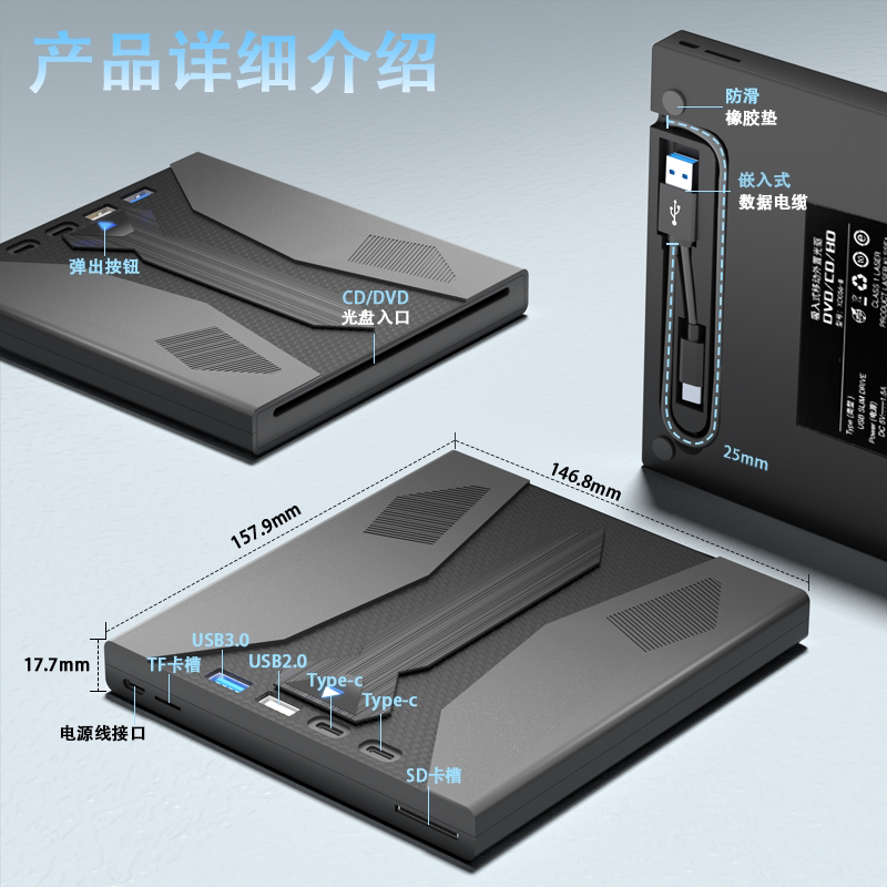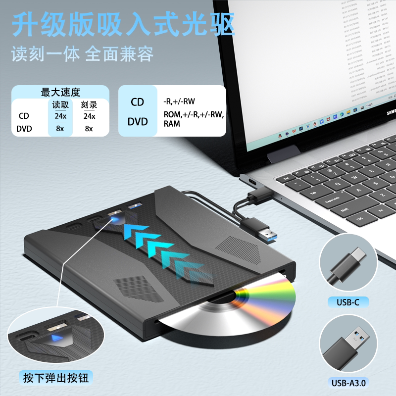 3.0外置移动USB光驱DVD/CD七合一多功能刻录机TYPE-C外接电脑通用