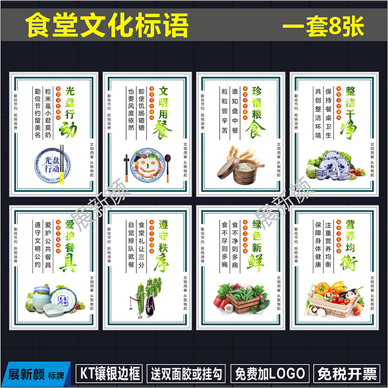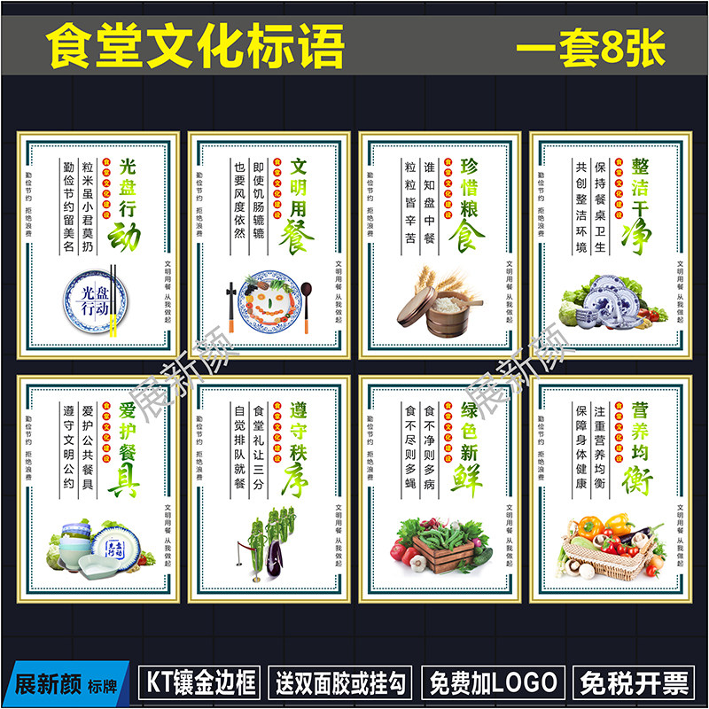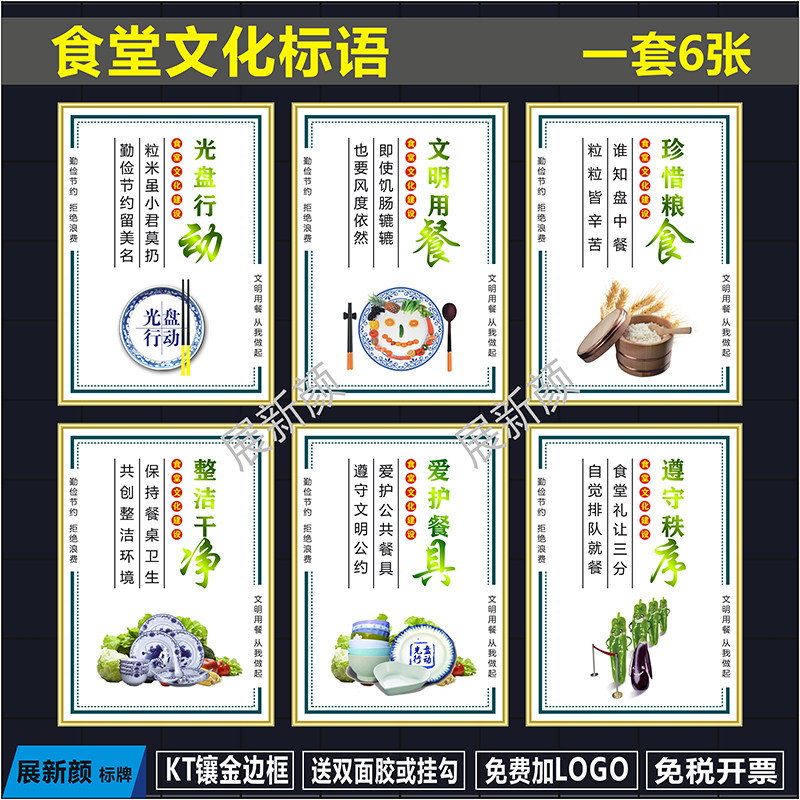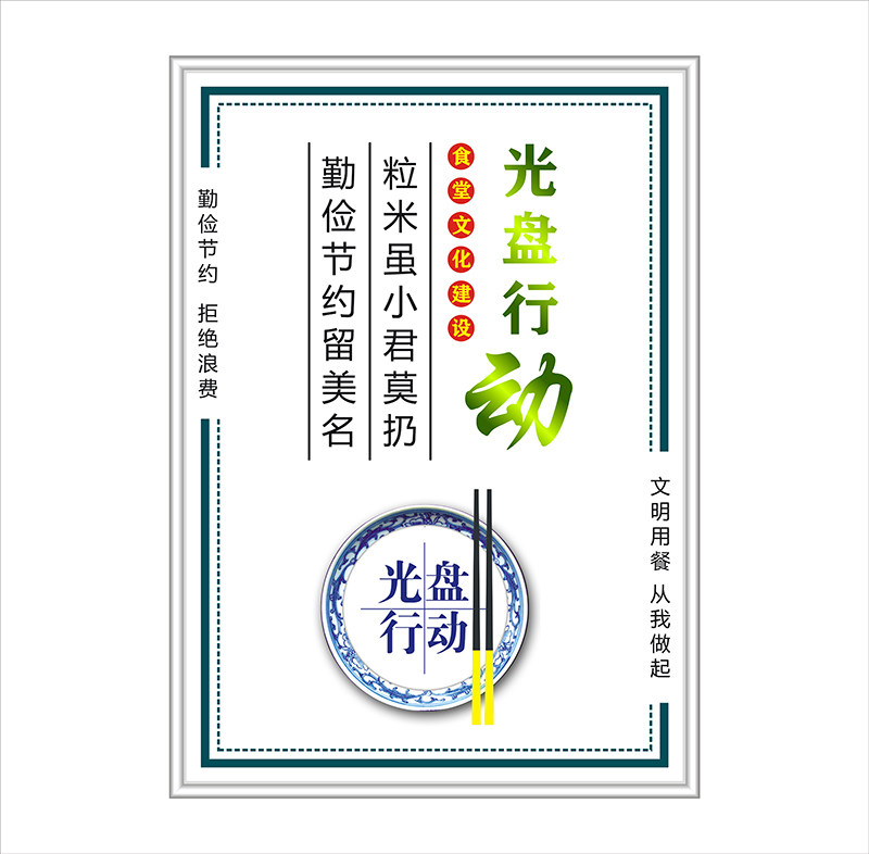 食堂标语餐饮文化 饭店光盘行动节约粮食标识牌 餐厅海报展板挂图