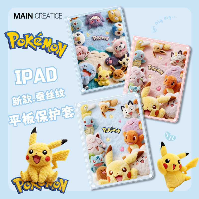 适用ipad11平板保护套ipadair7苹果air6皮卡丘mini7保护壳10代9九8带笔槽ipadpro宝可梦9.7英寸air5毛绒3迷你