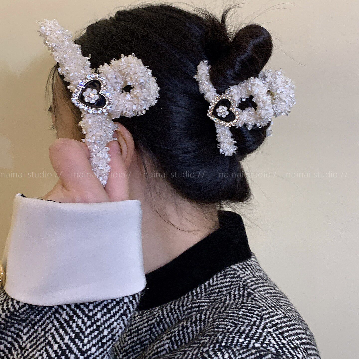心有浪漫山海~颗颗水钻醋酸盘发抓夹蝴蝶造型鲨鱼夹半扎发抓发夹