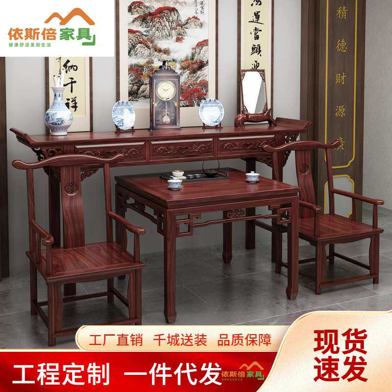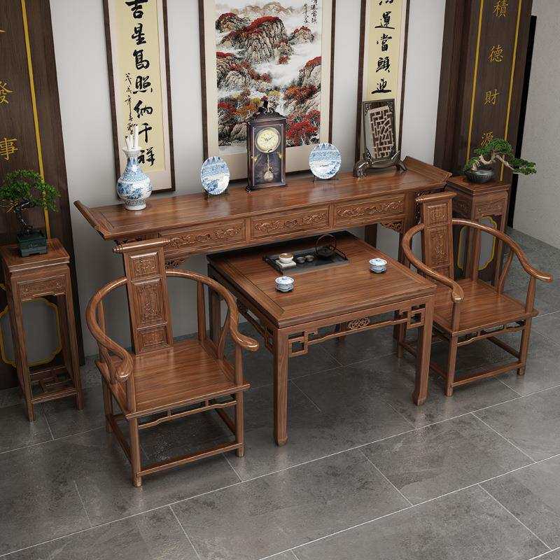 中堂六件套新中式神台条案供桌农村堂屋家具八仙桌案台实木香案