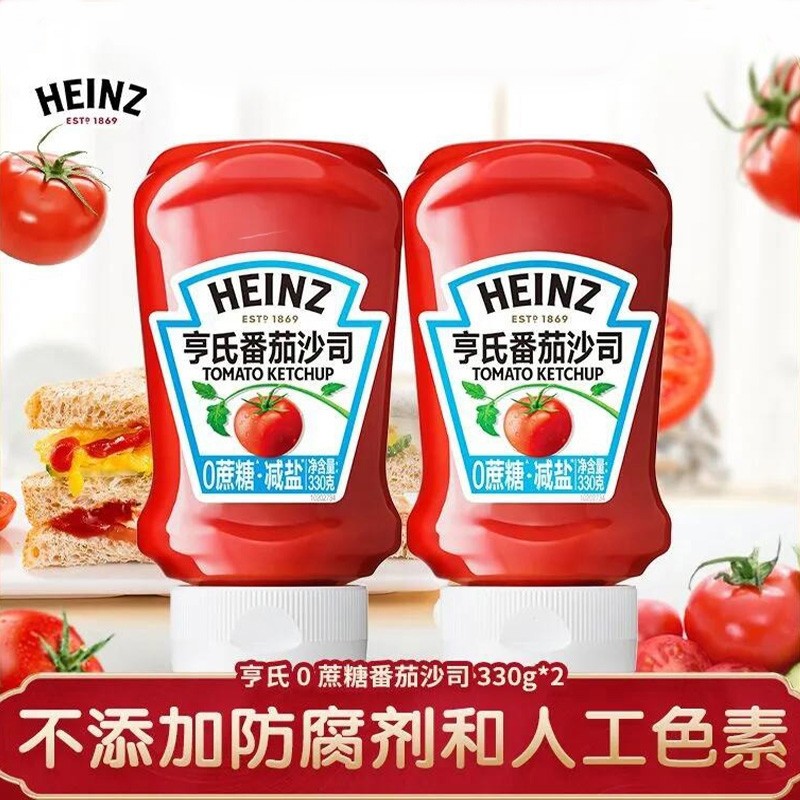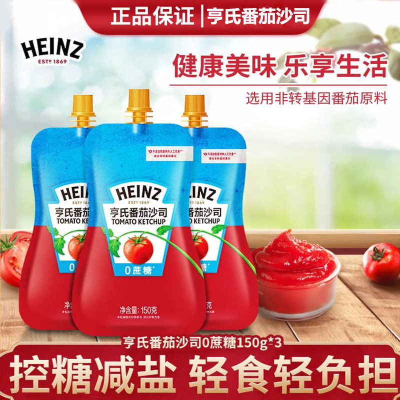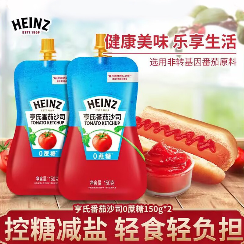 亨氏0蔗糖番茄酱番茄沙司330g瓶装装0脂150g袋装汉堡意面蘸酱家用