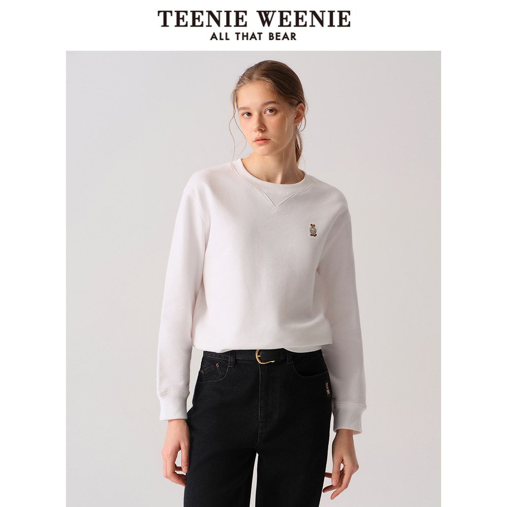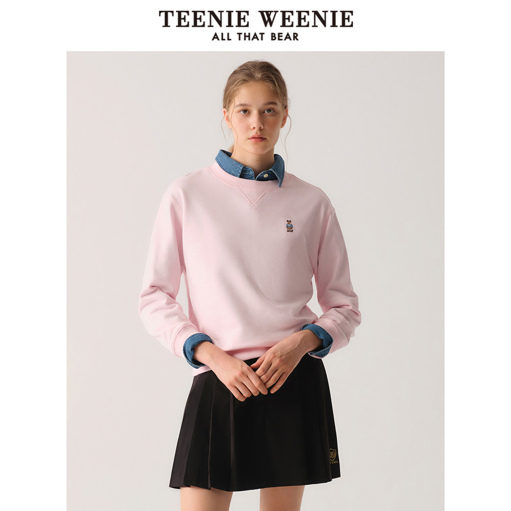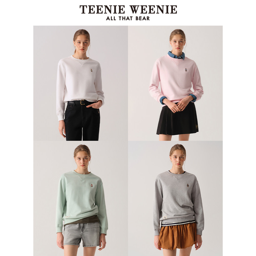 Teenie Weenie小熊奥莱卫衣女2025秋季简约纯色圆领套头长袖T恤