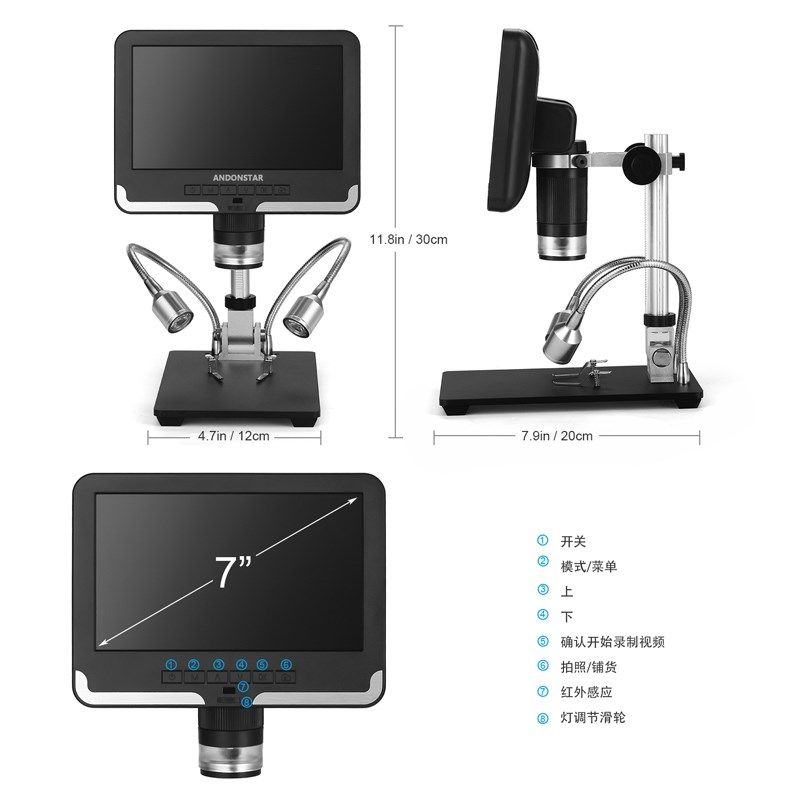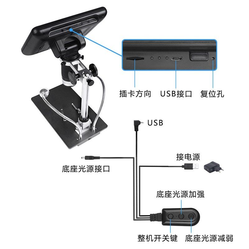AD206数码显微镜7寸显示v屏专业鉴定维修电路板芯片高清测量显微