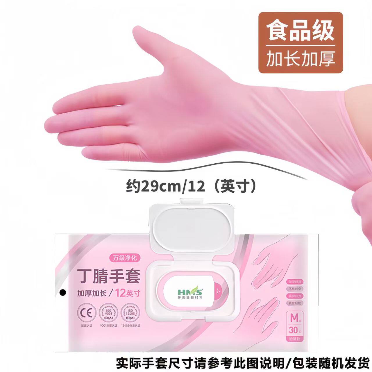 一次性丁腈手套家务洗碗清洁厨房耐用食品级加长PVC家用丁晴女用