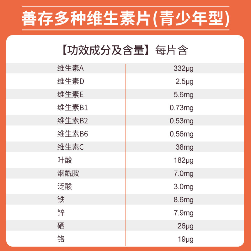 善存多种维生素复合片青少年佳维儿童学生vc维生素B族VD蓝帽认证