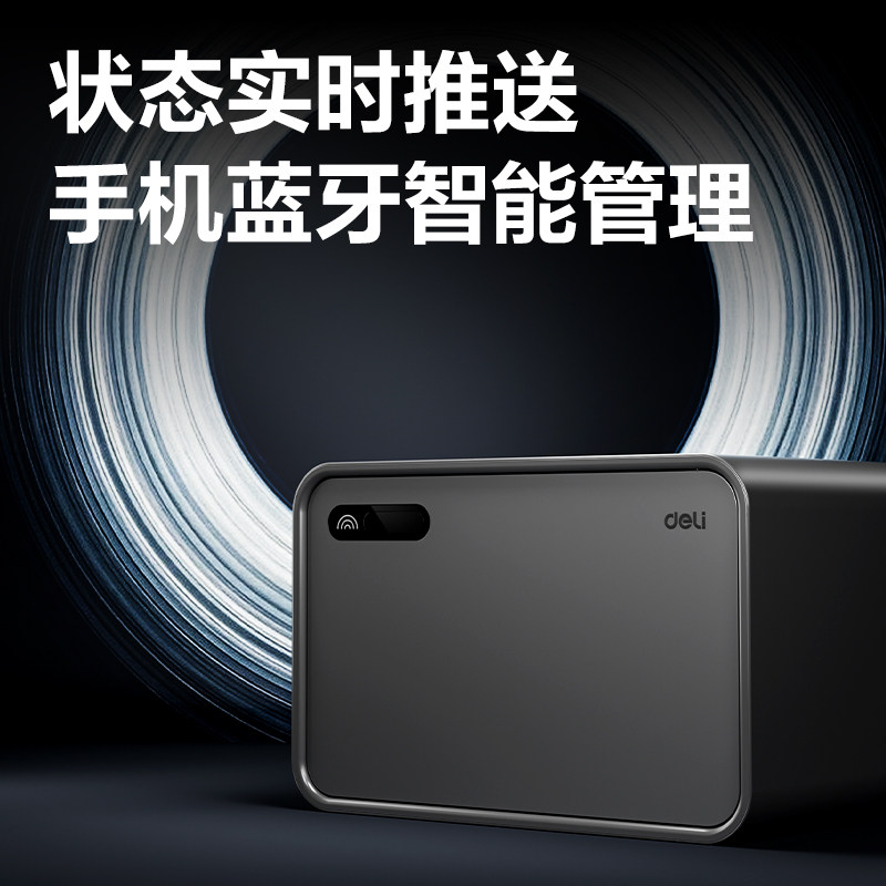 得力家用小型保险箱2026年新款蓝牙智能管理保险箱入衣柜自动开门20cm简约时尚家用首饰保管箱全钢箱体防盗