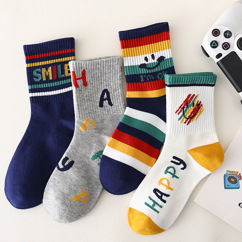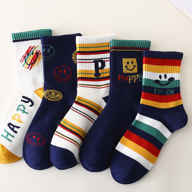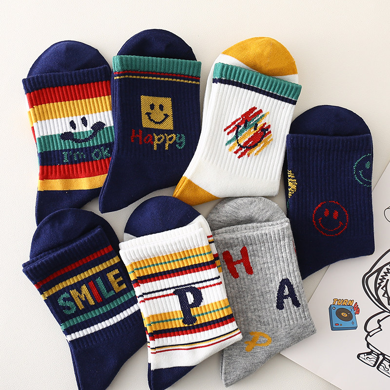 彩虹笑脸儿童袜子男童秋冬款学生6到12岁青少年中大童ins潮流帅气