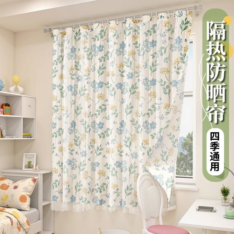 免打孔带纱窗帘出租房隔断帘门帘法式挡帘卧室帘子阳台客厅飘窗